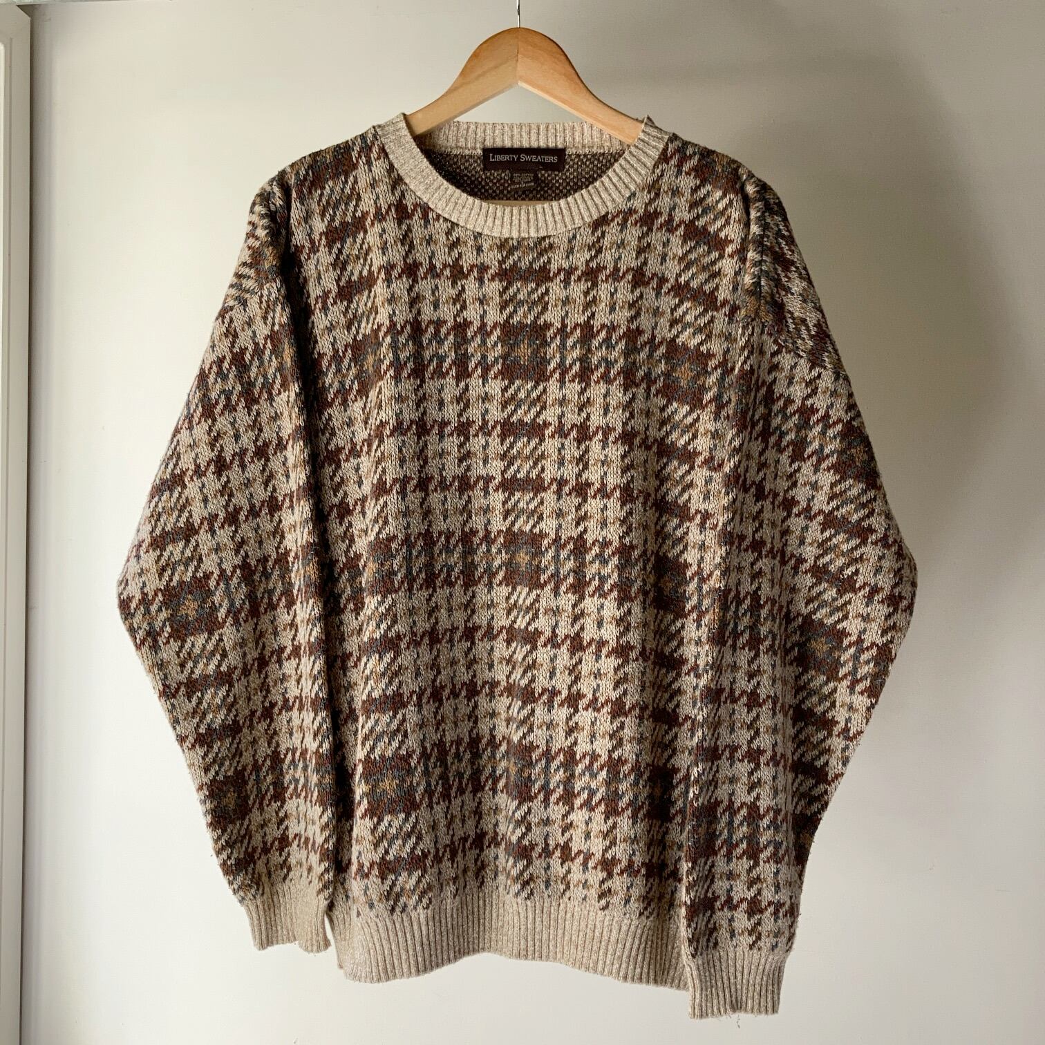 千鳥格子 ブラウン×ベージュ ニットセーター【0212A02】