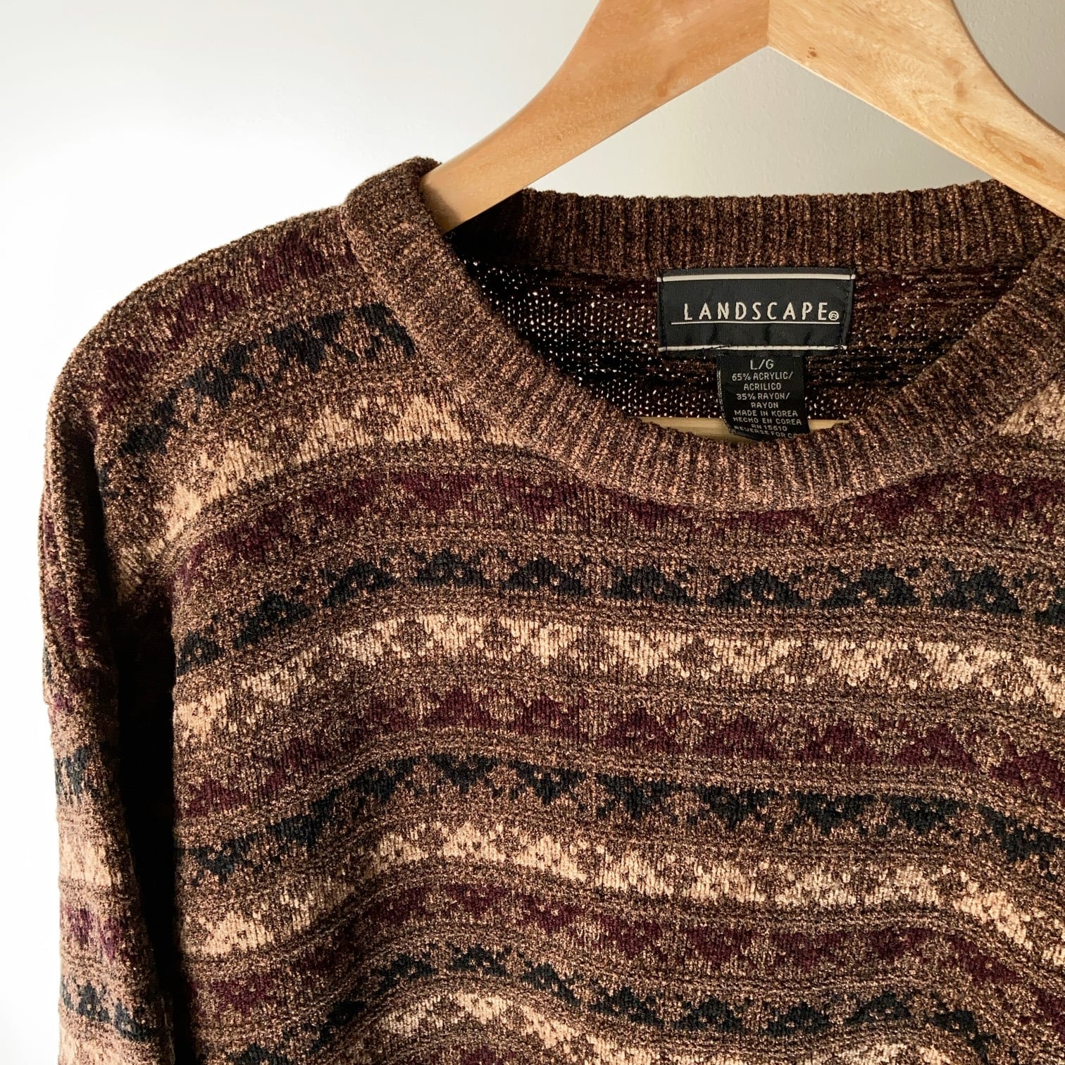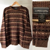 ベロア風総柄デザインニットセーター ブラウン【0212A06】