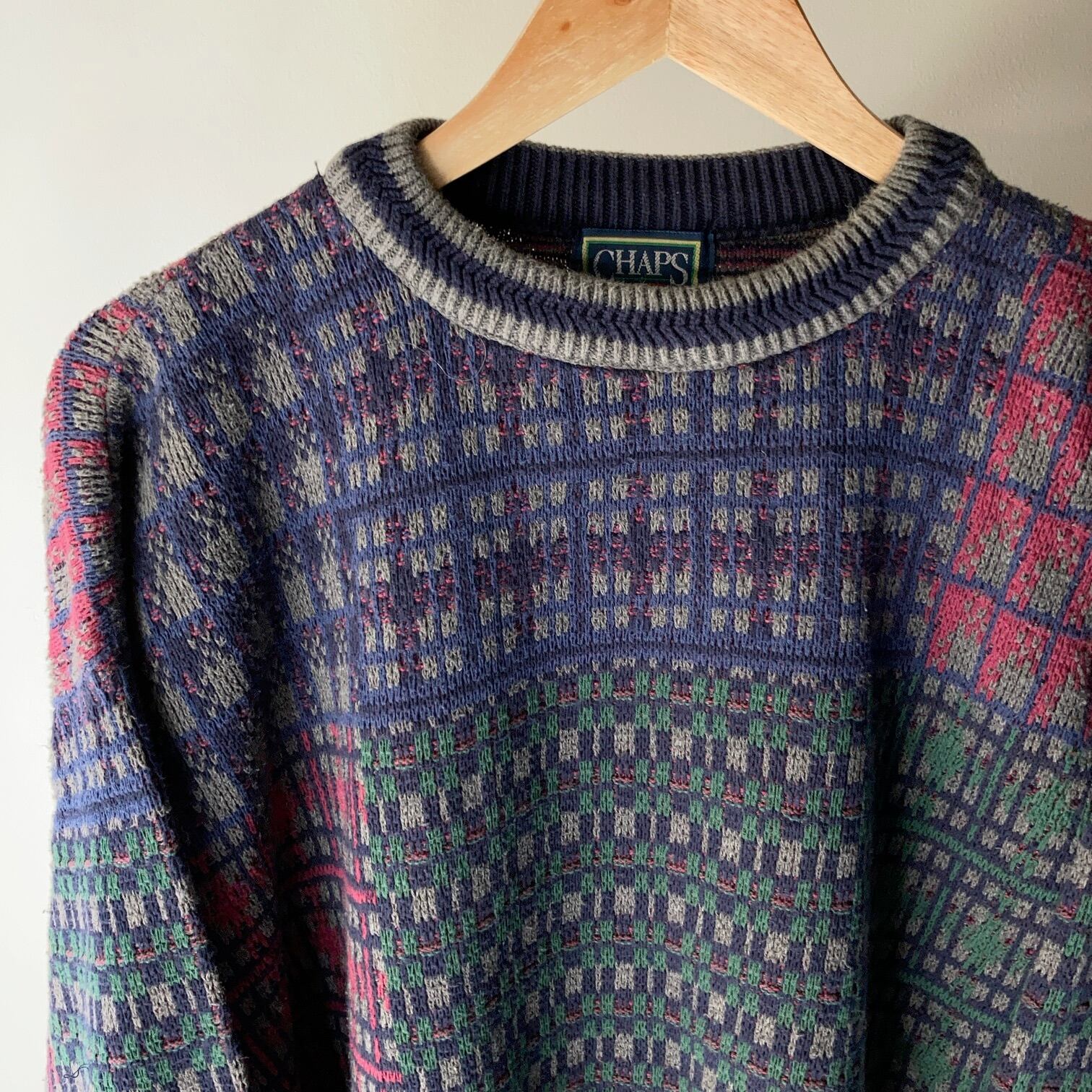 90's CHAPS Ralph Lauren パッチワーク風デザインニット 【0212A08】
