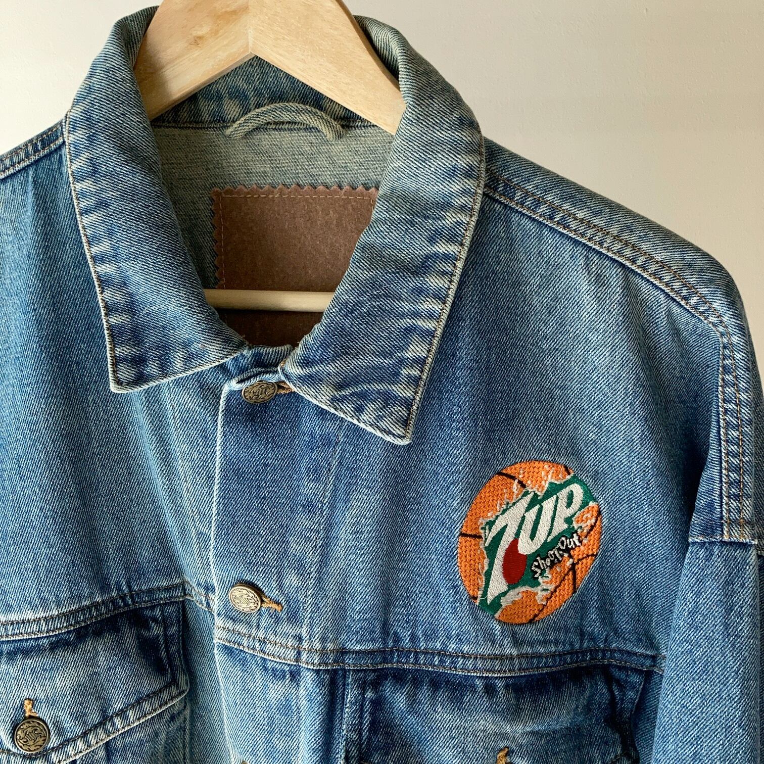 アメリカの炭酸ジュース "7up"の刺繍が入ったデニムジャケット。