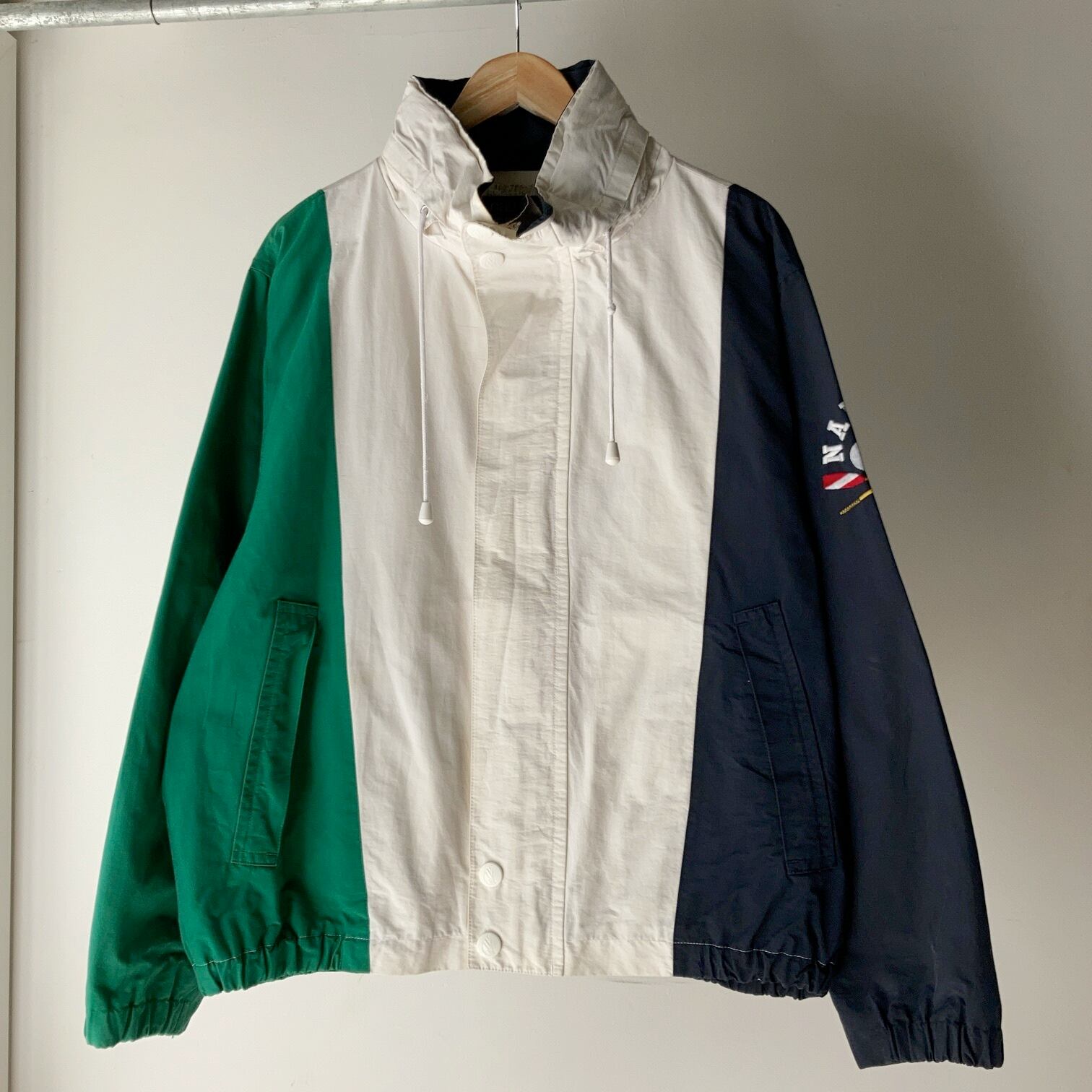 90's NAUTICA ナイロン切り替えジャケット グリーン×ホワイト×ネイビー 【0219A36】