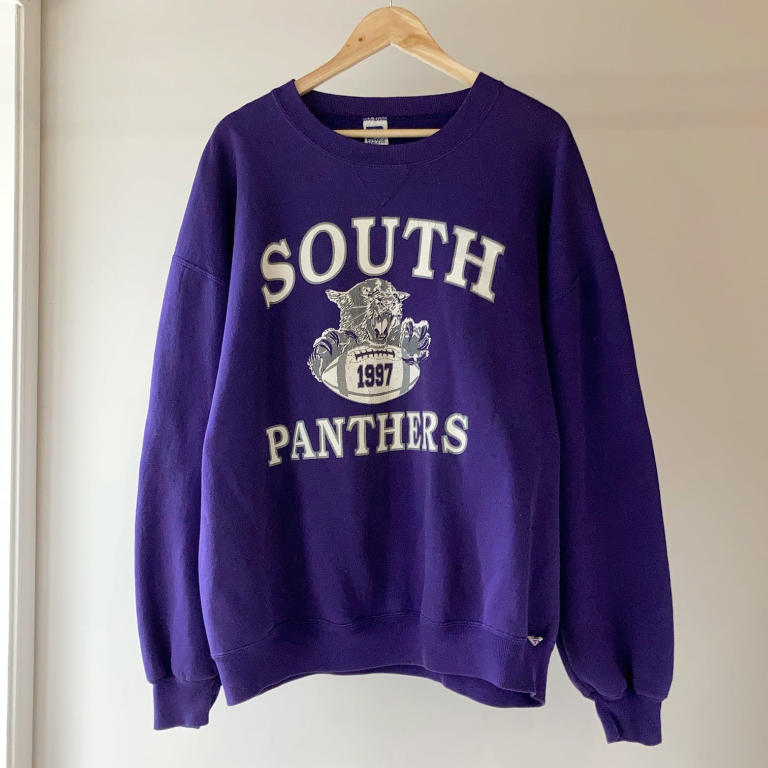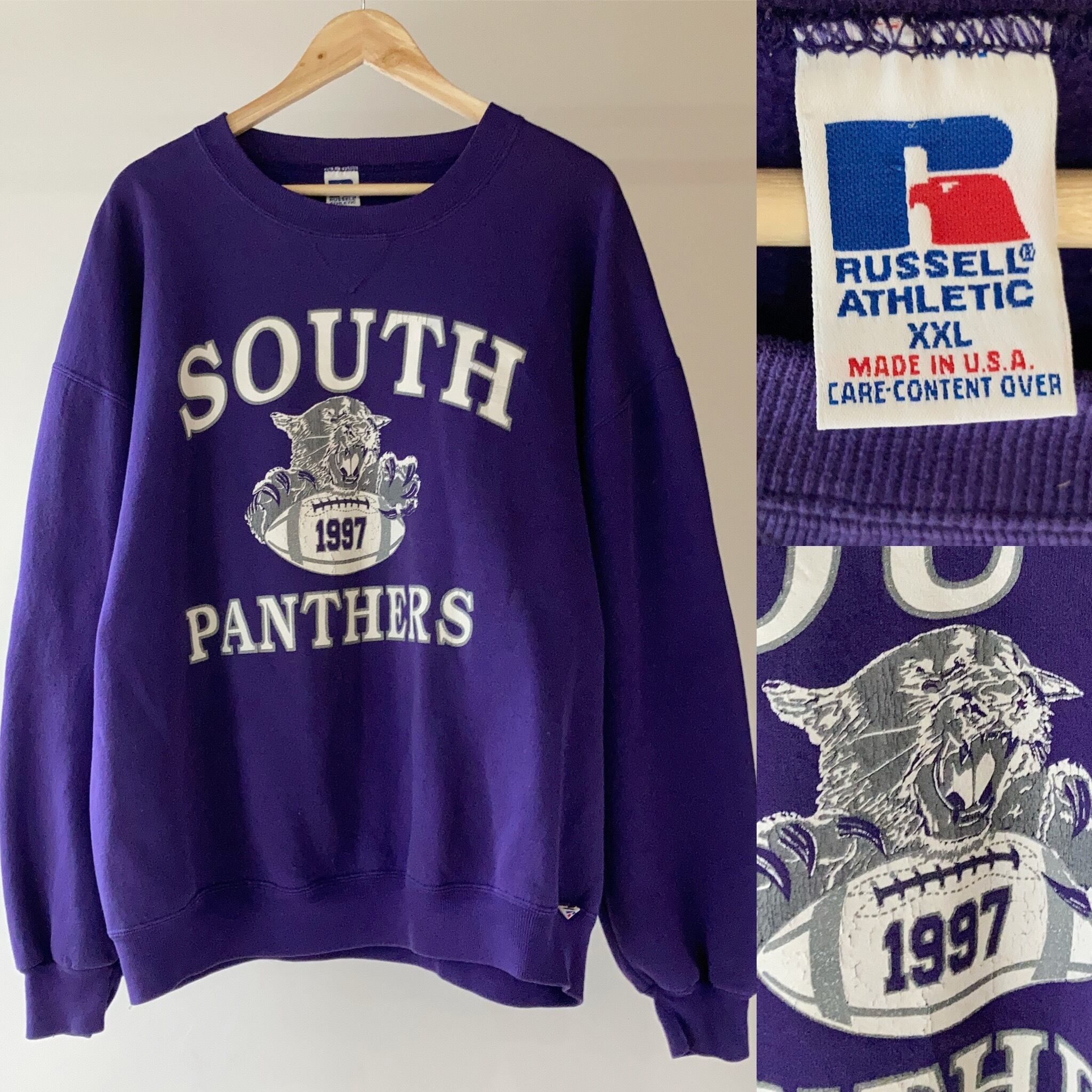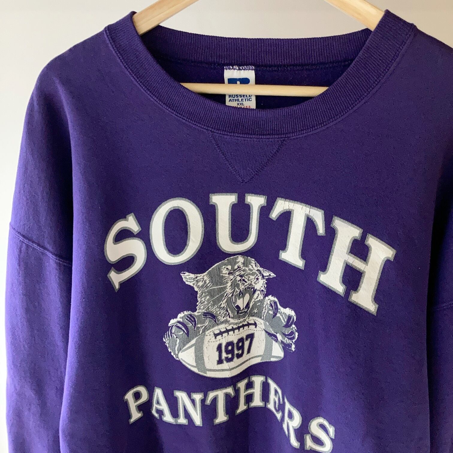 ハイスクールフットボールチームのSOUTH PANTHERSプリントスウェットです。