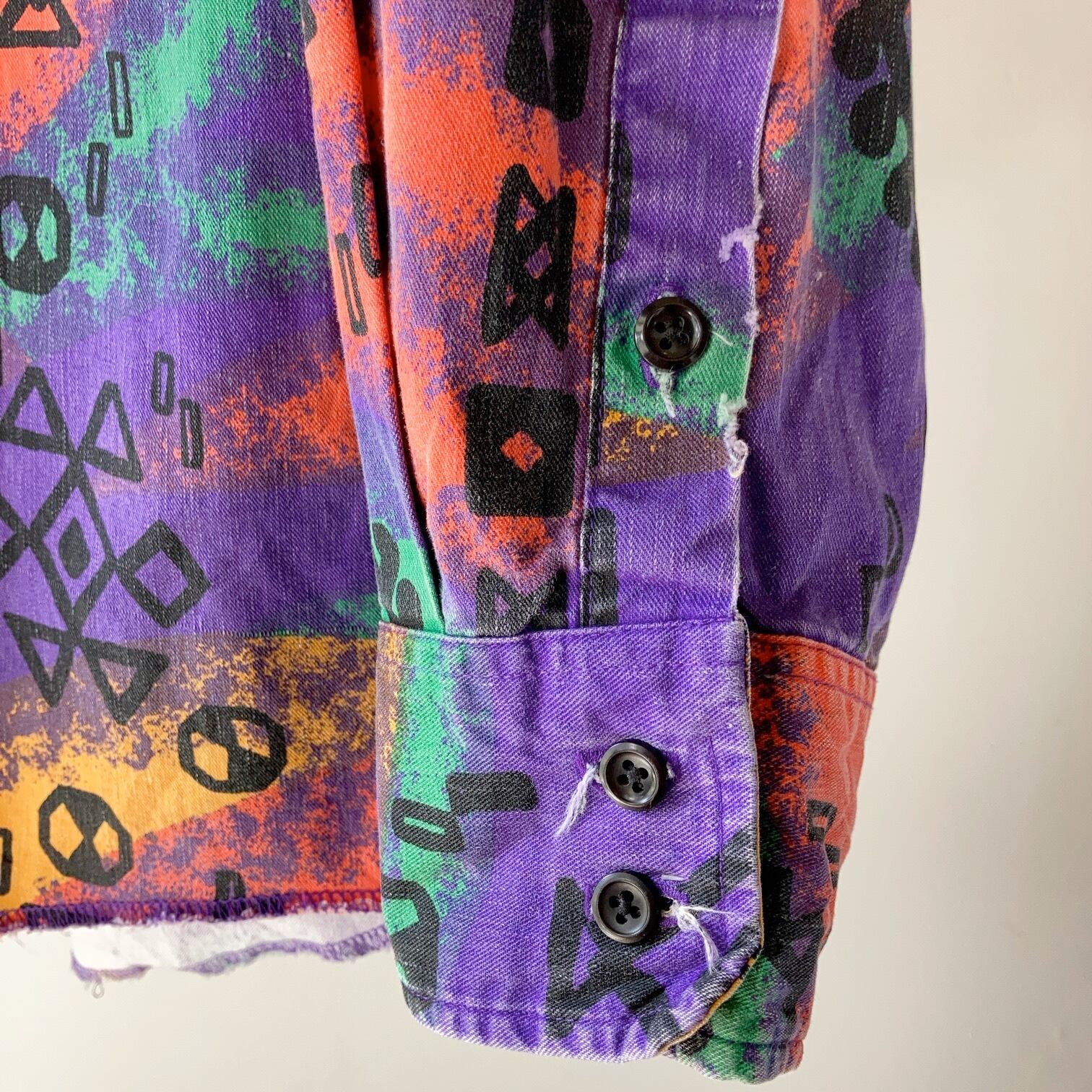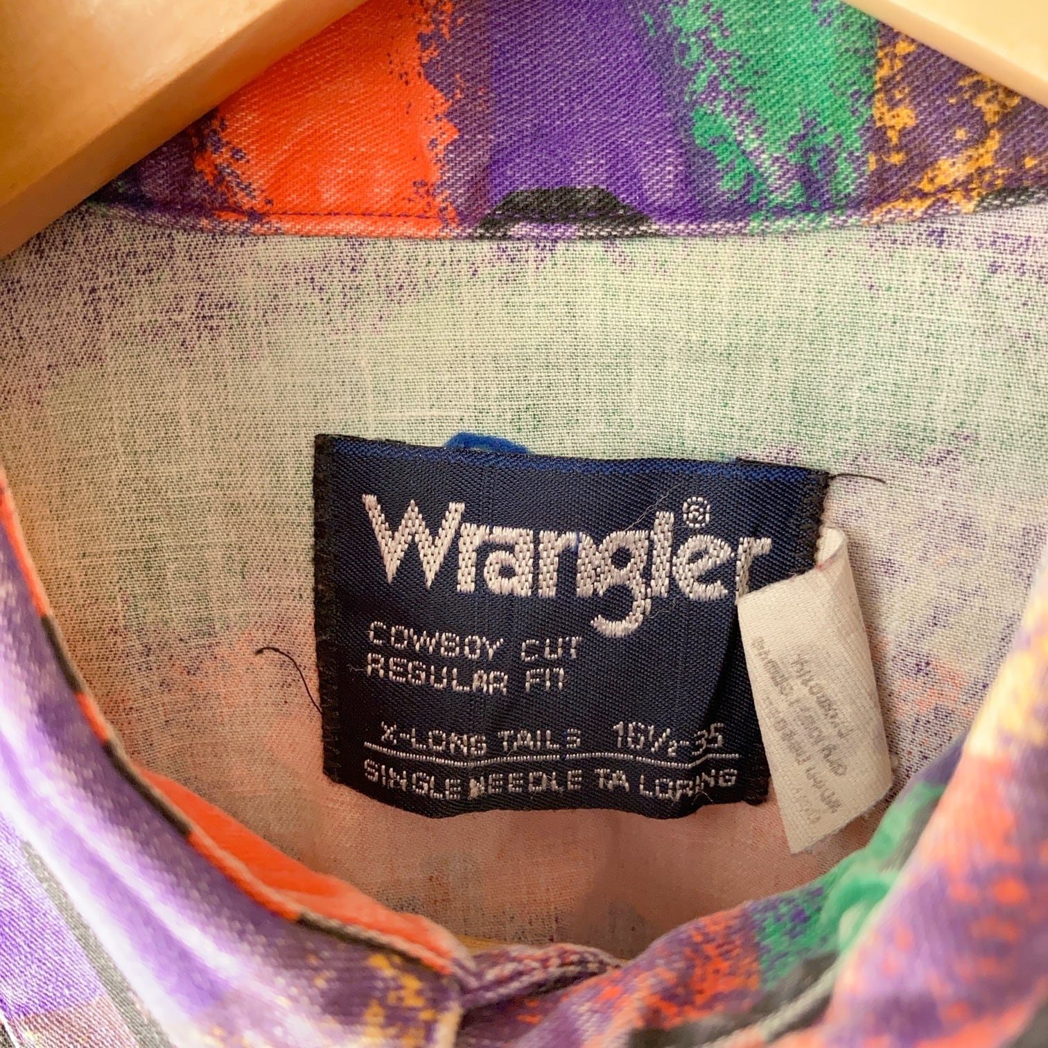 80年代頃のタグがついたラングラーのサイケデリックなコットンシャツ。
