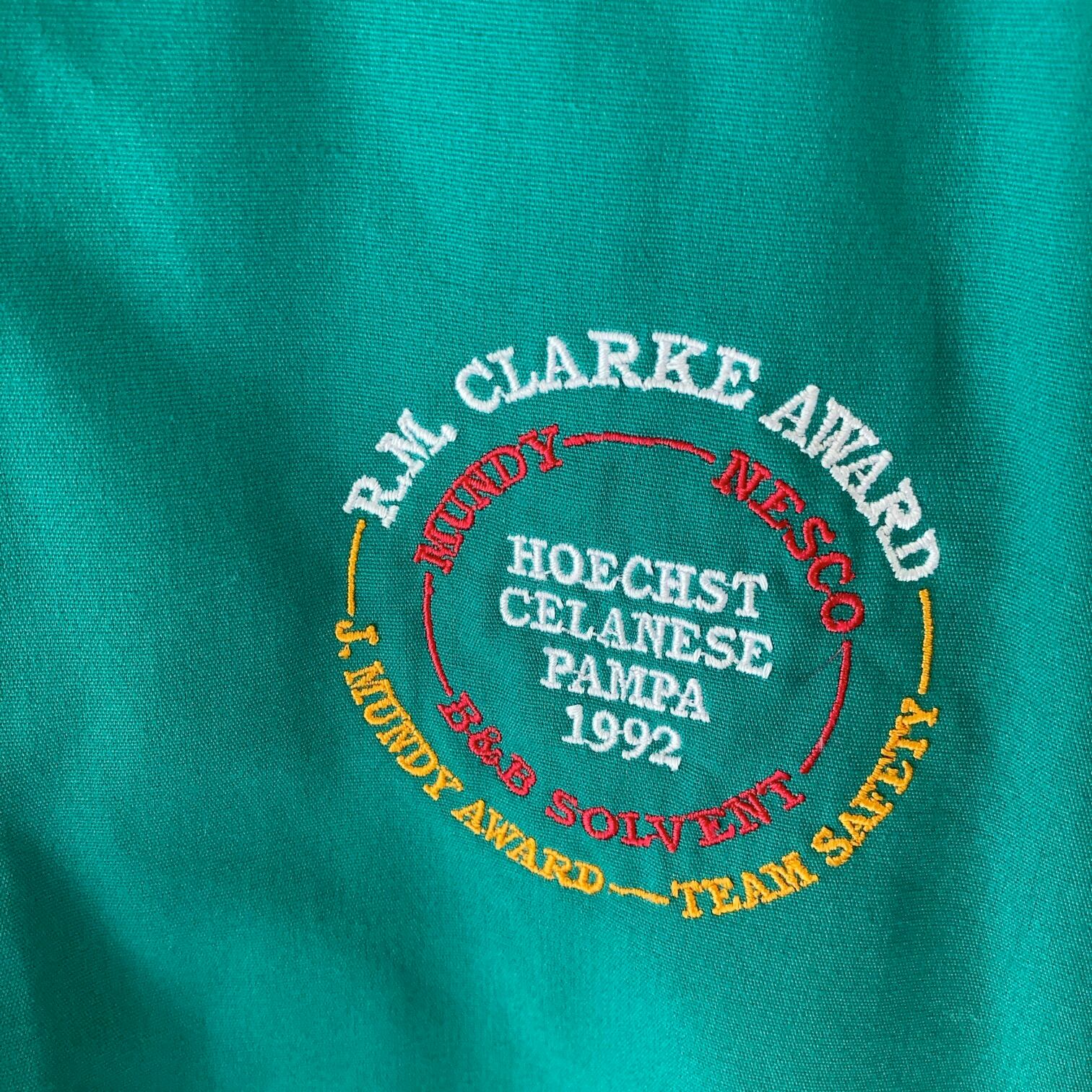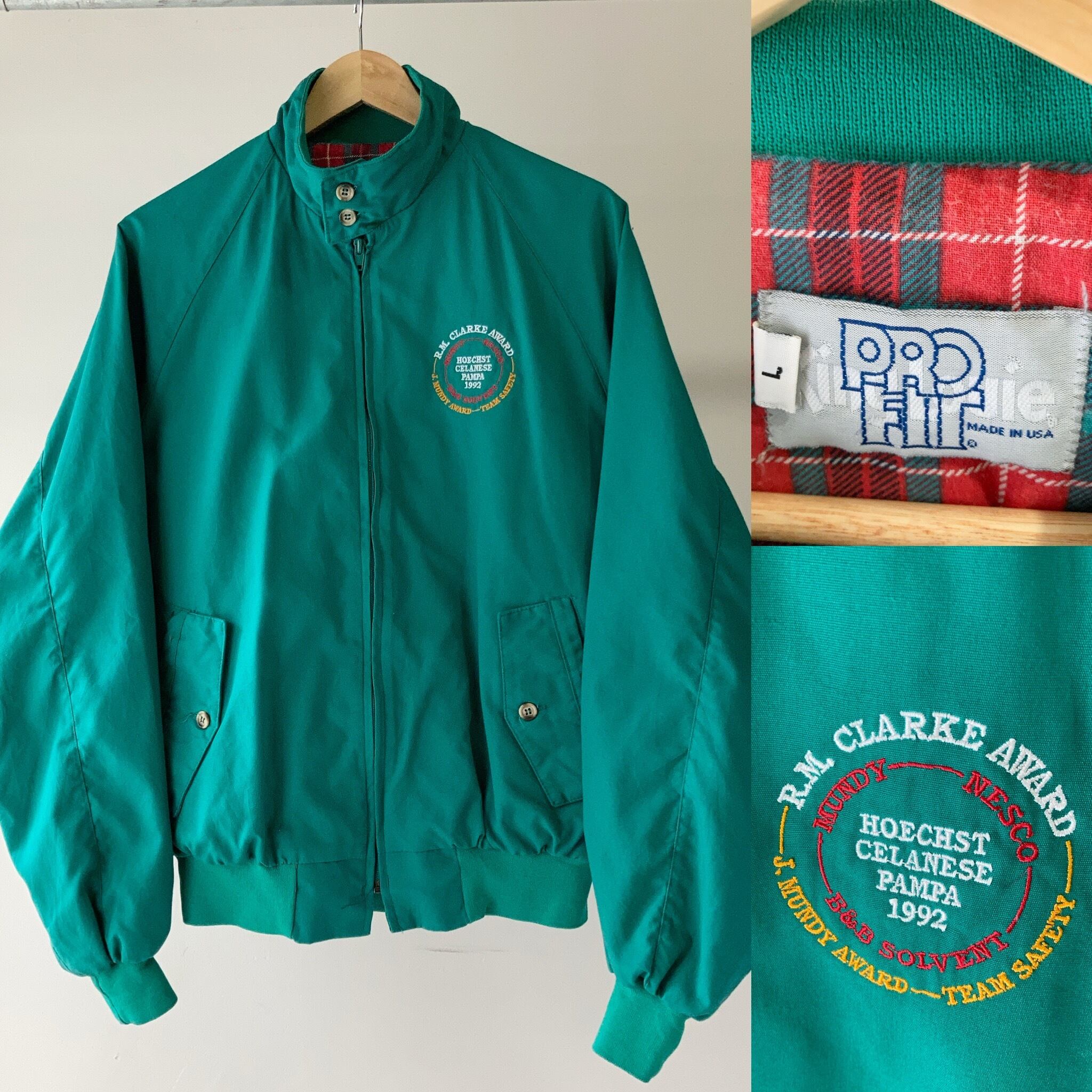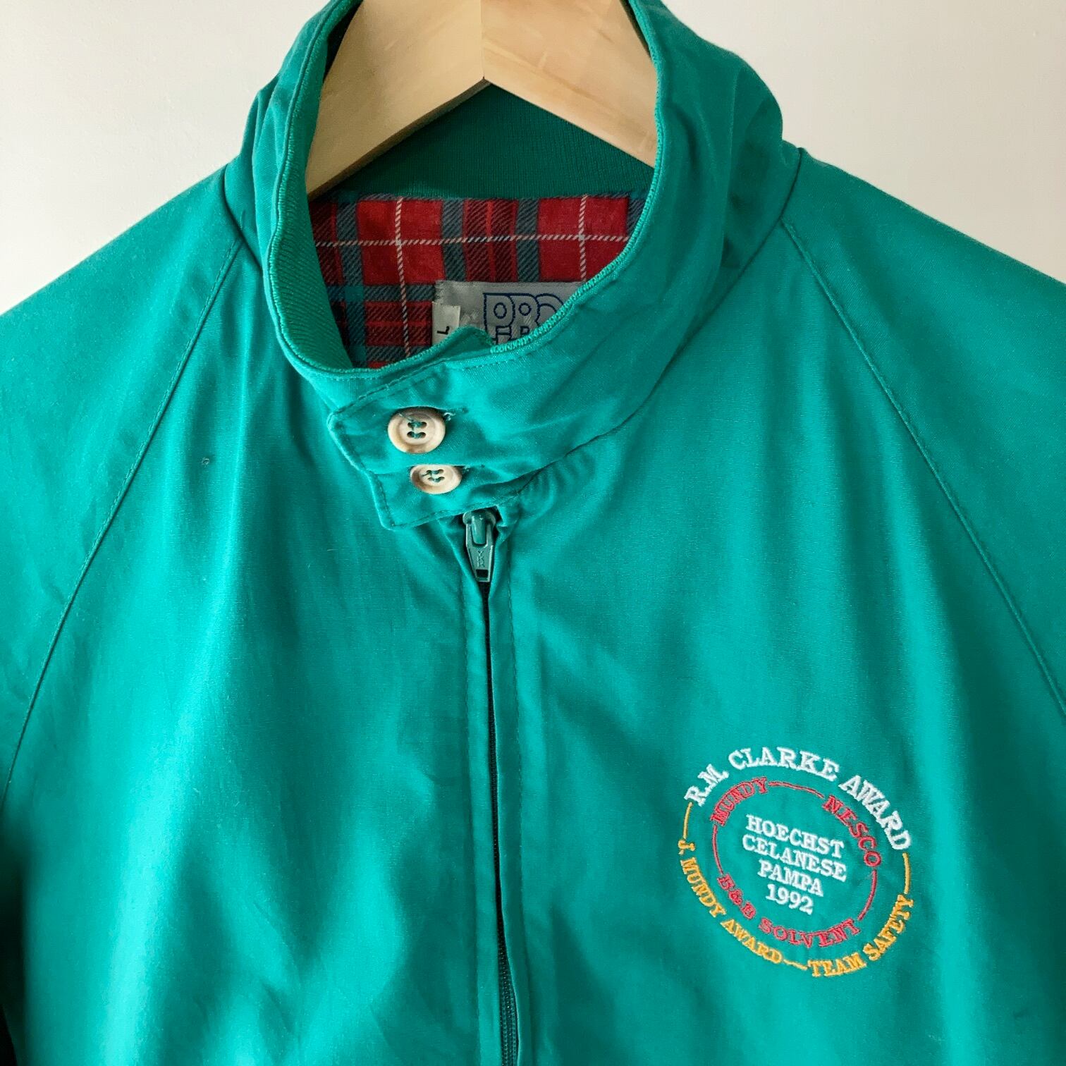 ライトグリーンの華やかなカラーをしたハリントンジャケット。胸の刺繍も良いアクセントとなっています。
