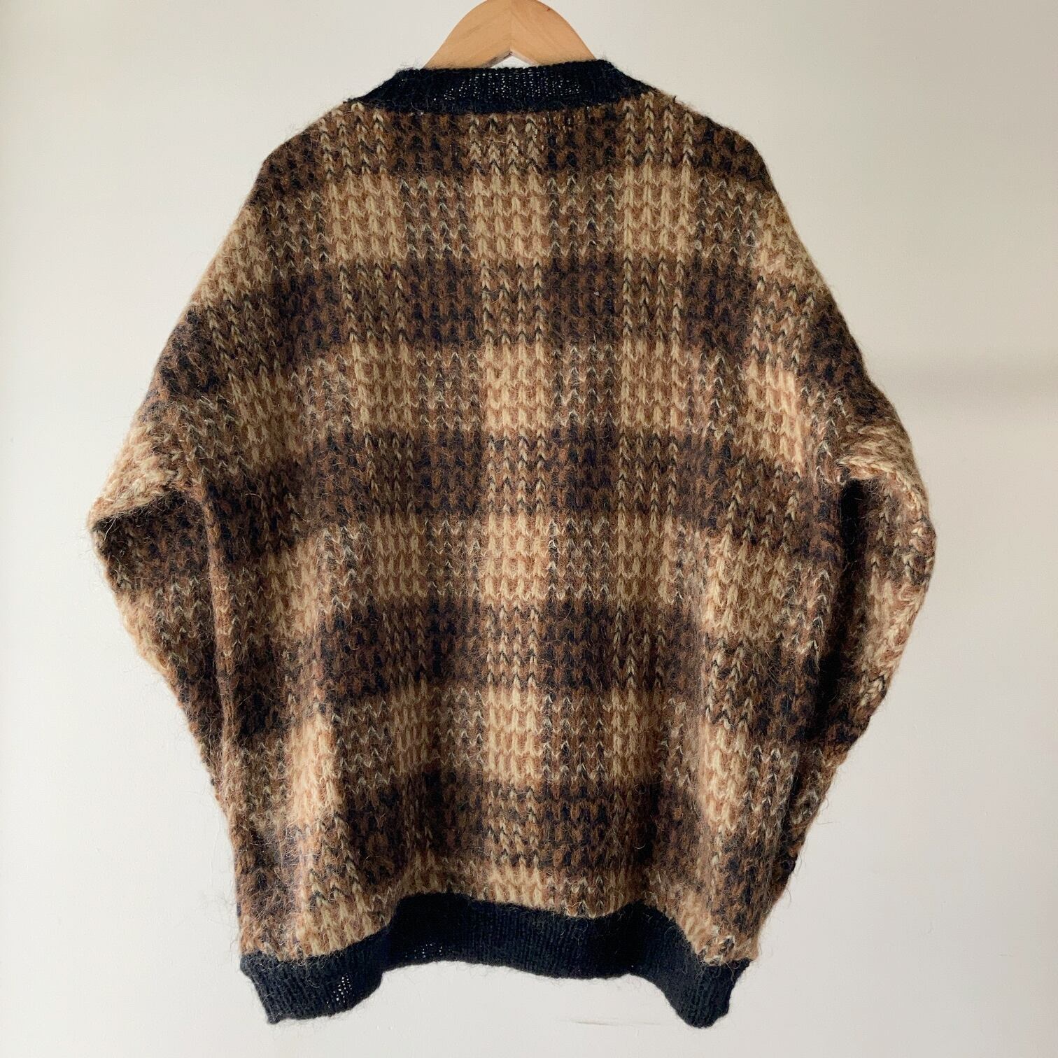 ウールモヘアが50%使用されたチェック柄ニットセーター。