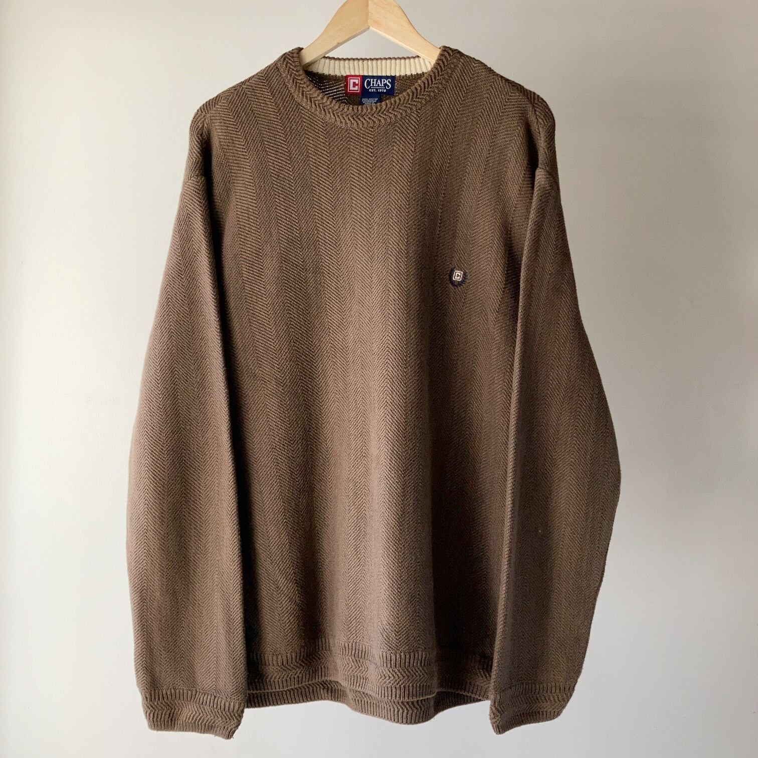 CHAPS ヘリンボーンコットンニット ブラウン SIZE XL【0319A33】