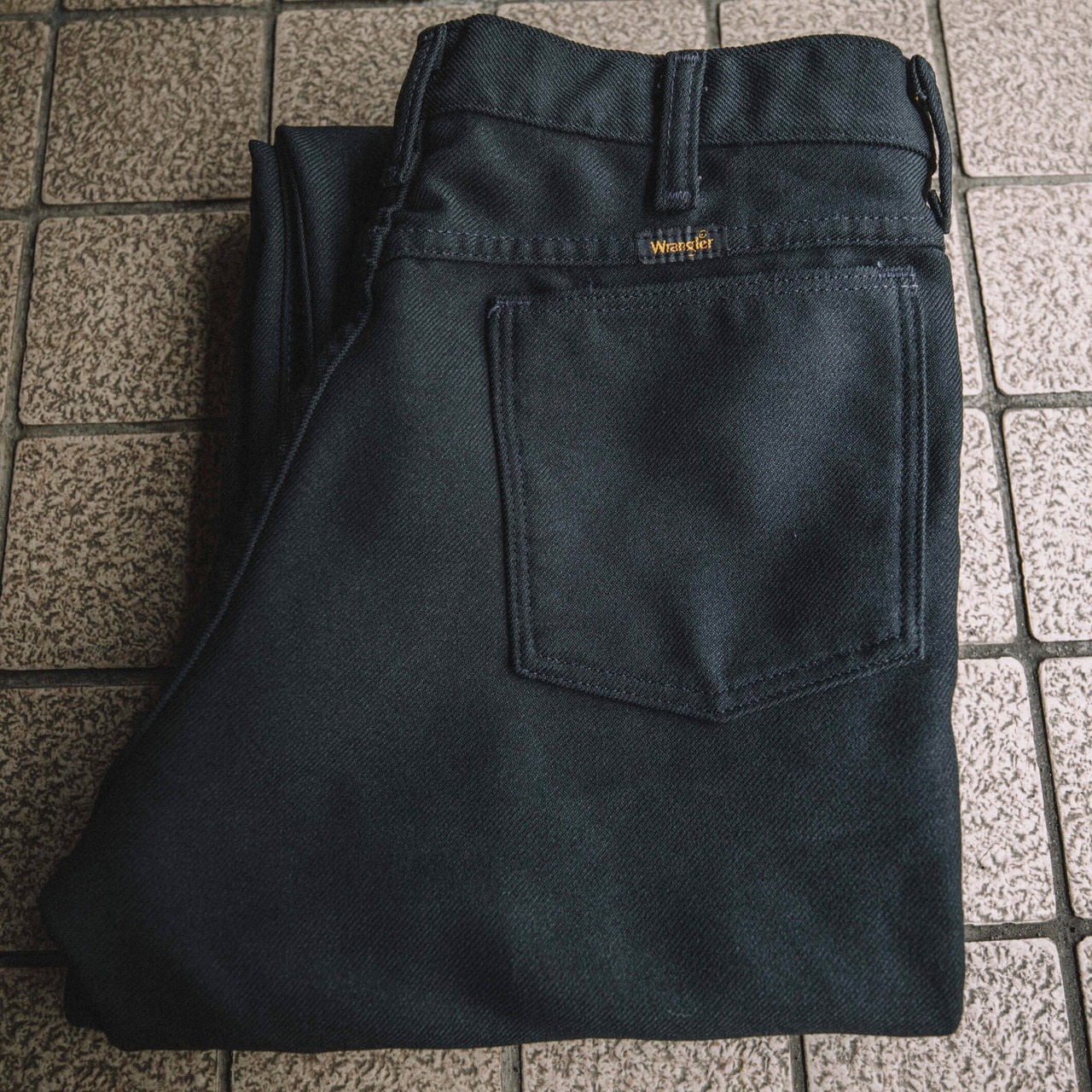 ポリエステル100%で作られており、丈夫さ、シーンを選ばない美しいシルエット、洗濯のしやすさなどどこを取っても非がない最強のパンツとして昔から人気のあるアイテムです。シルエットはフレアまではいかないブーツカット。リーバイスでいうところの517となります。