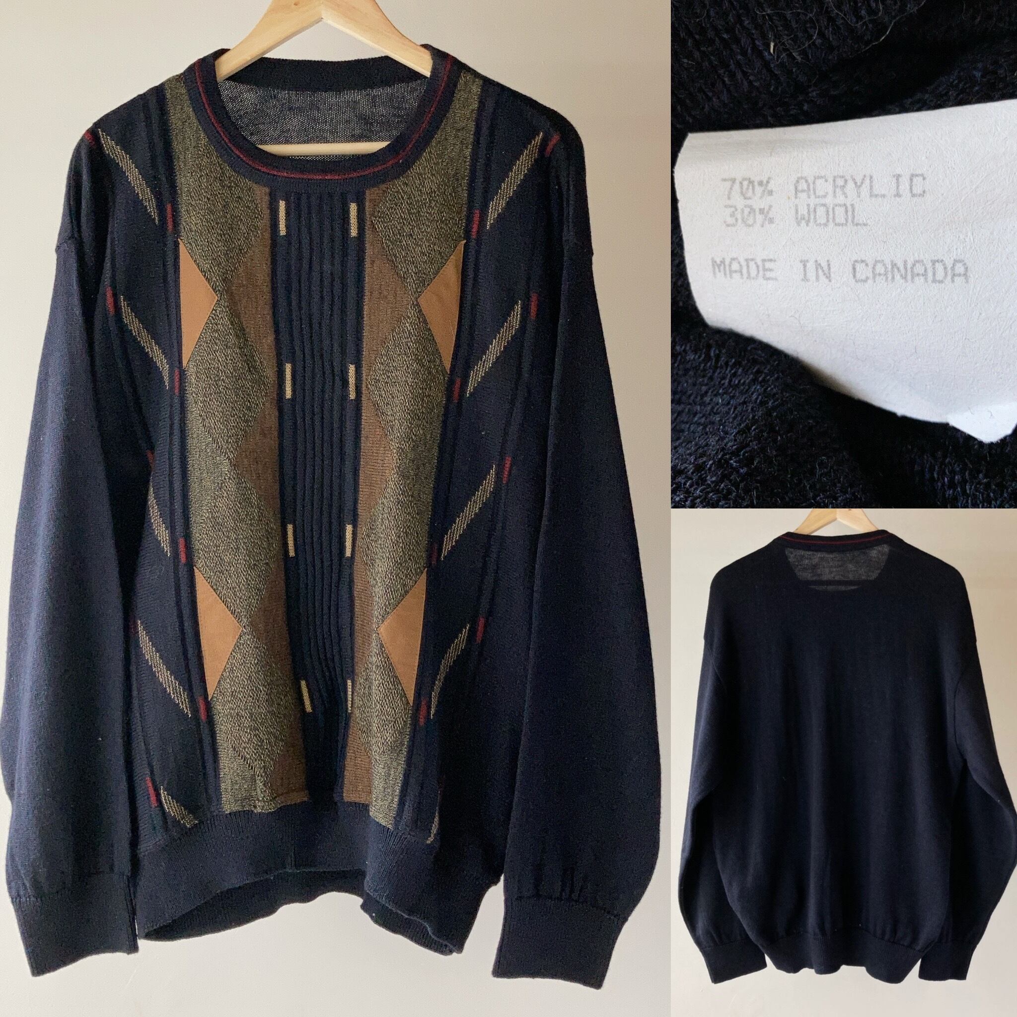 デザインニットセーター ブラック CANADA製 【0326A44】