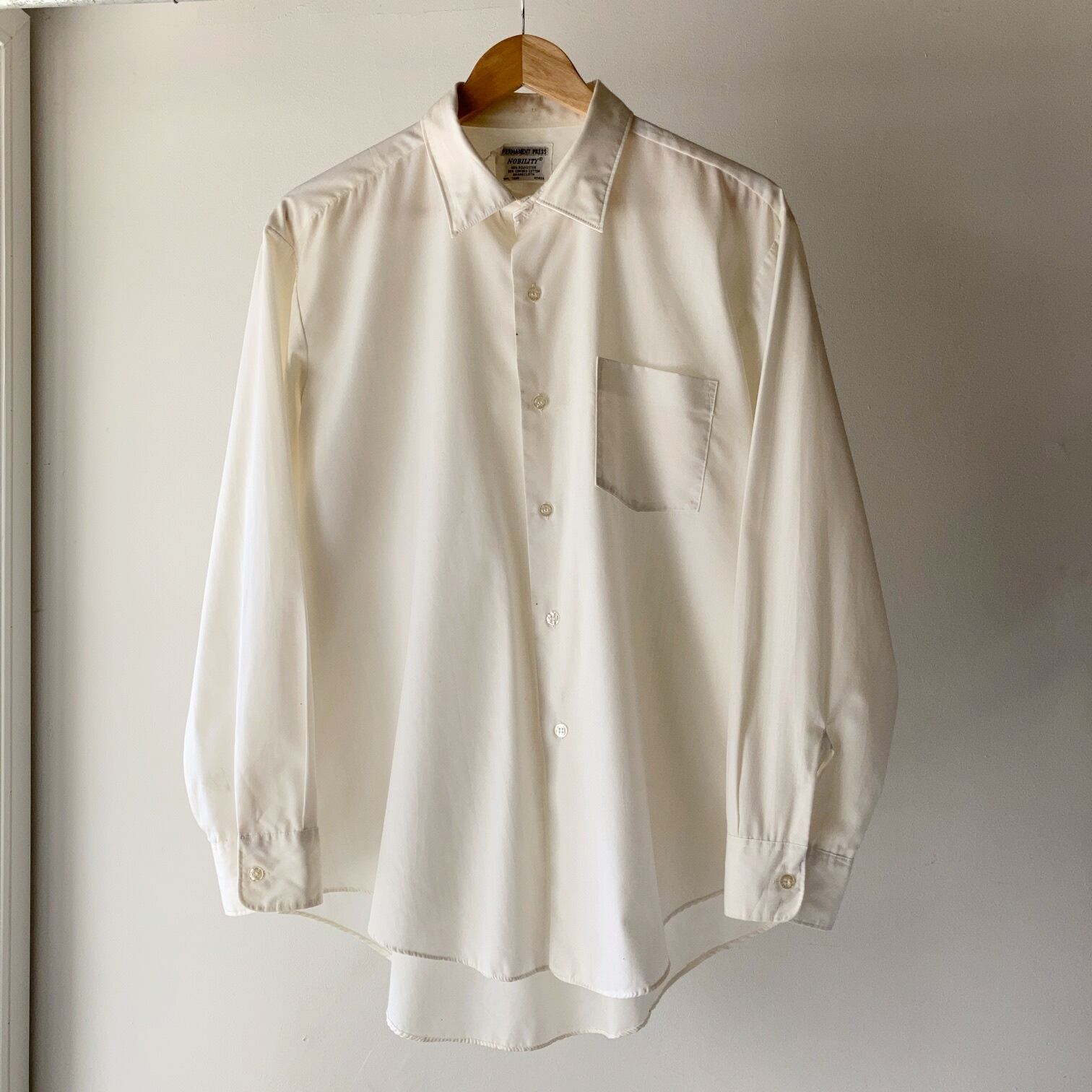 70's~ ポリエステルコットン 白シャツ オフホワイト SIZE L【TA032601】