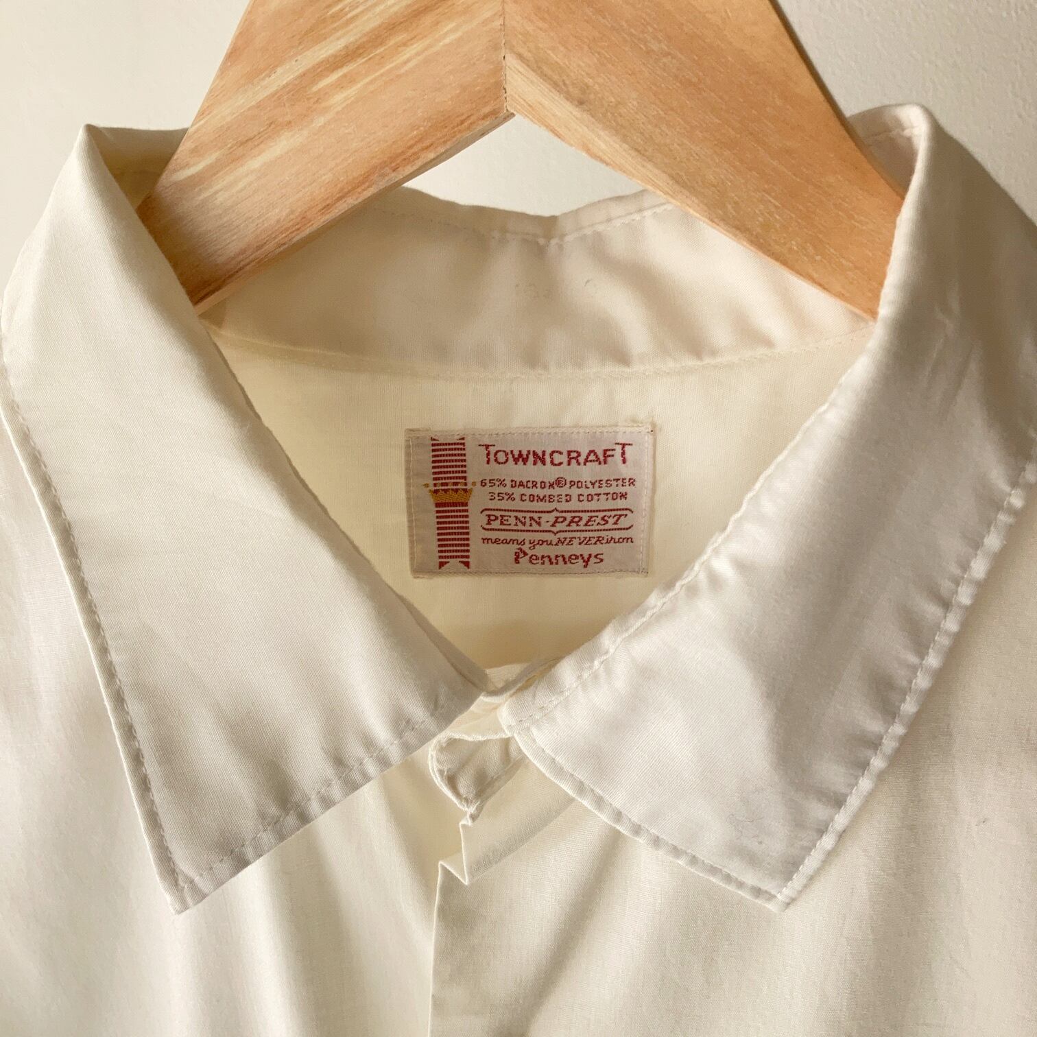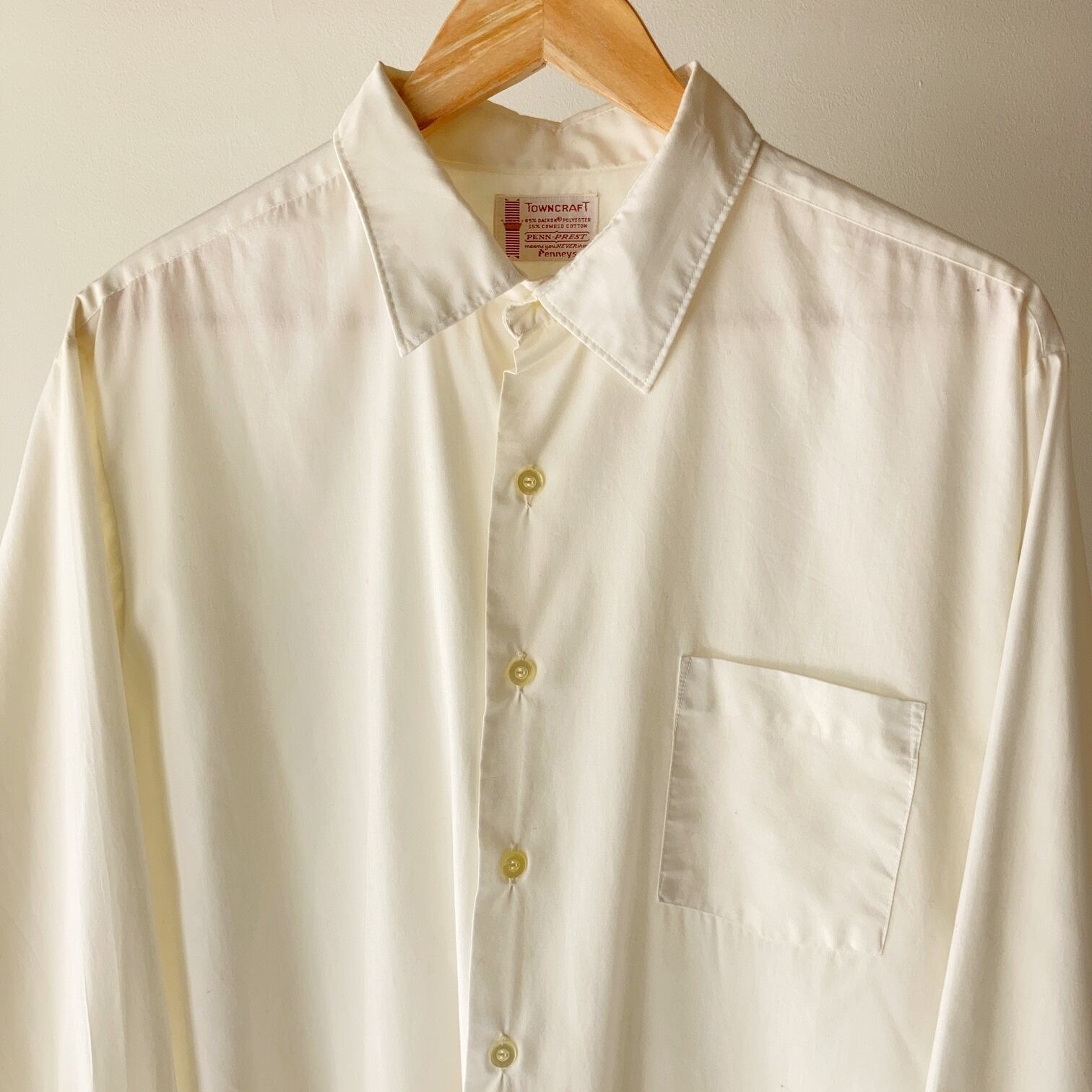 70's TOWN CRAFT ポリエステルコットン 白シャツ オフホワイト SIZE L【TA032602】
