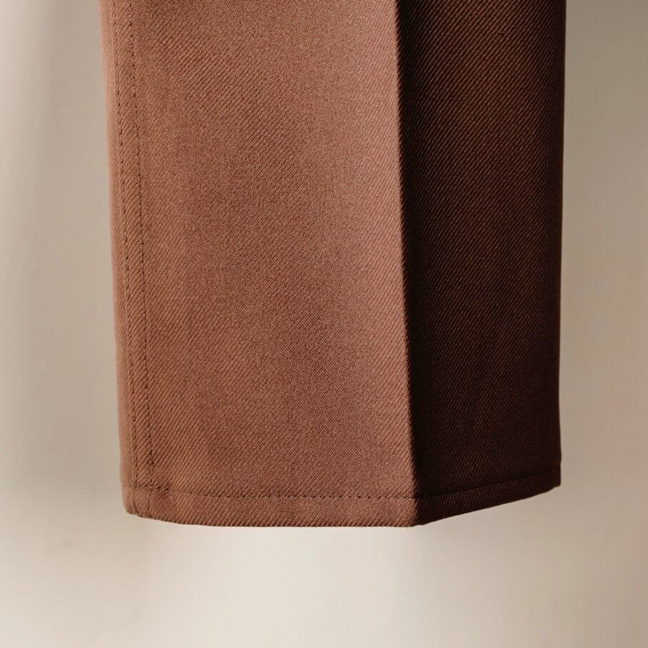 スラックスのようなワークパンツのような、少しフレアがかったパンツ。