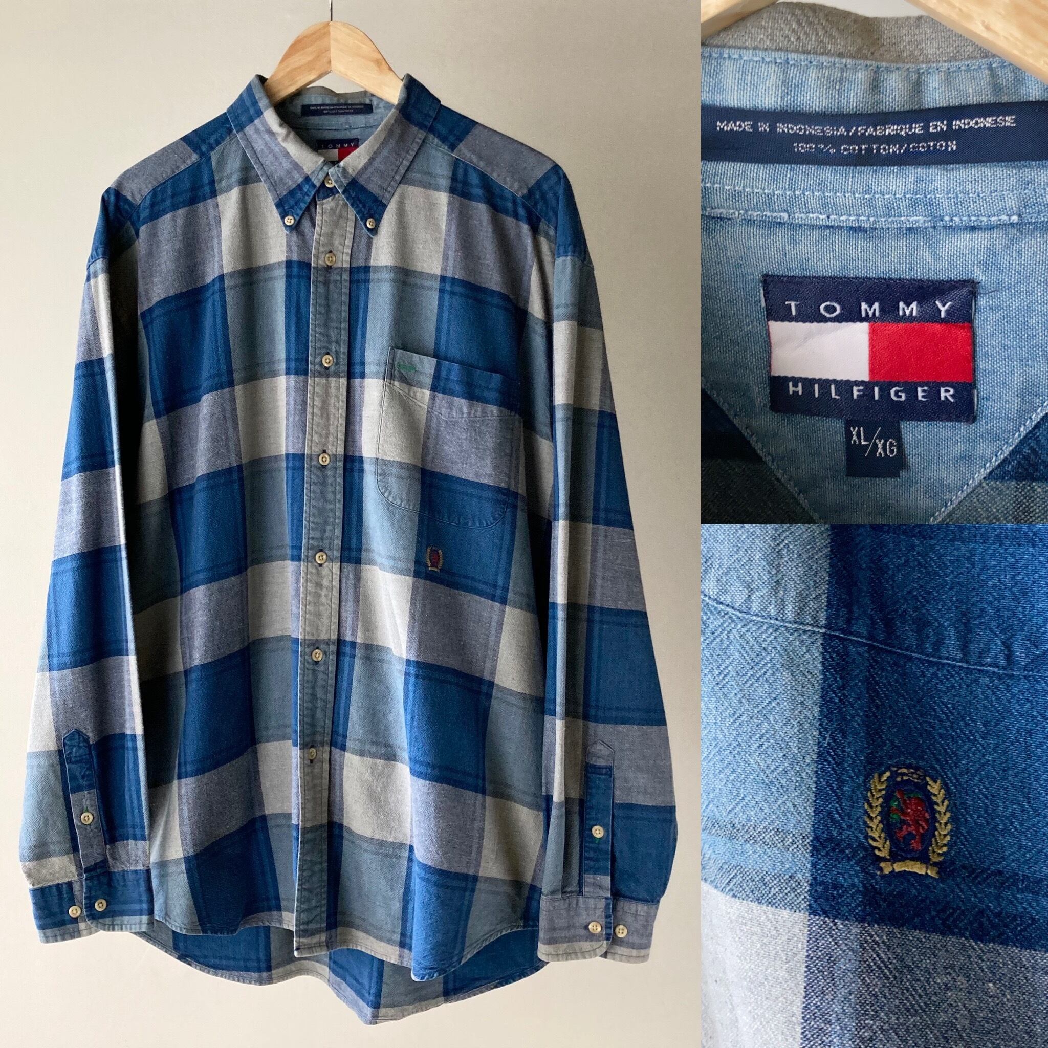 TOMMY HILFIGER コットンチェックシャツ ブルー Size XL【0409A11】