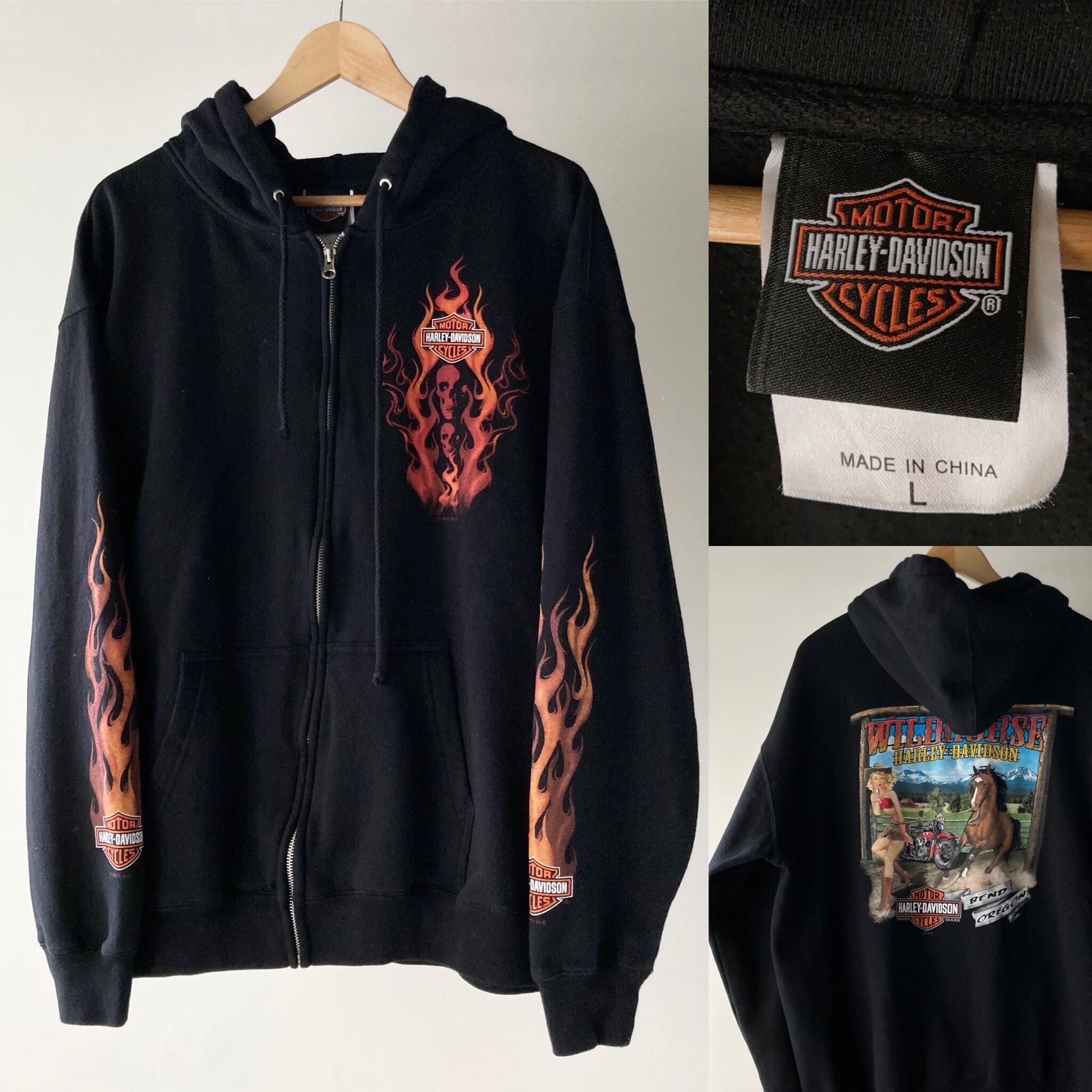 Harley-Davidson ファイヤーパターンパーカー ブラック Size L【0409A59】