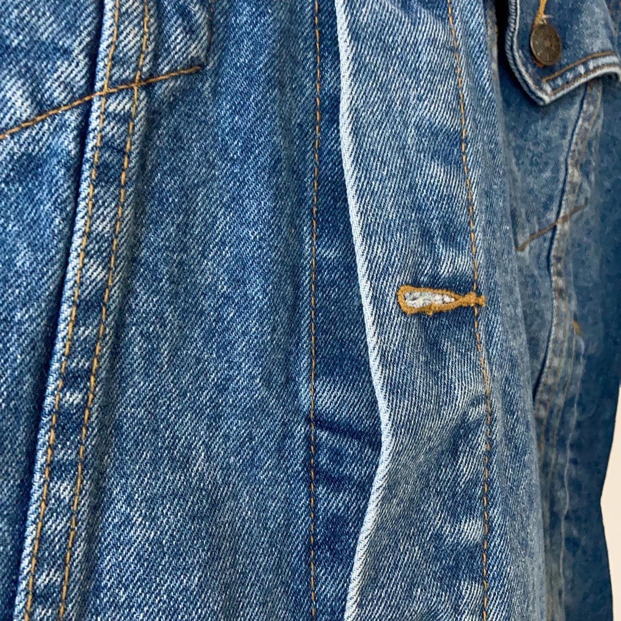 背中にブルドッグの刺繍が入ったイケてるデニムジャケット。