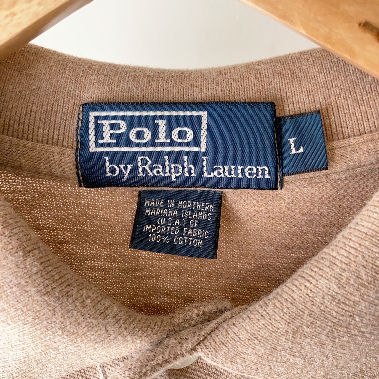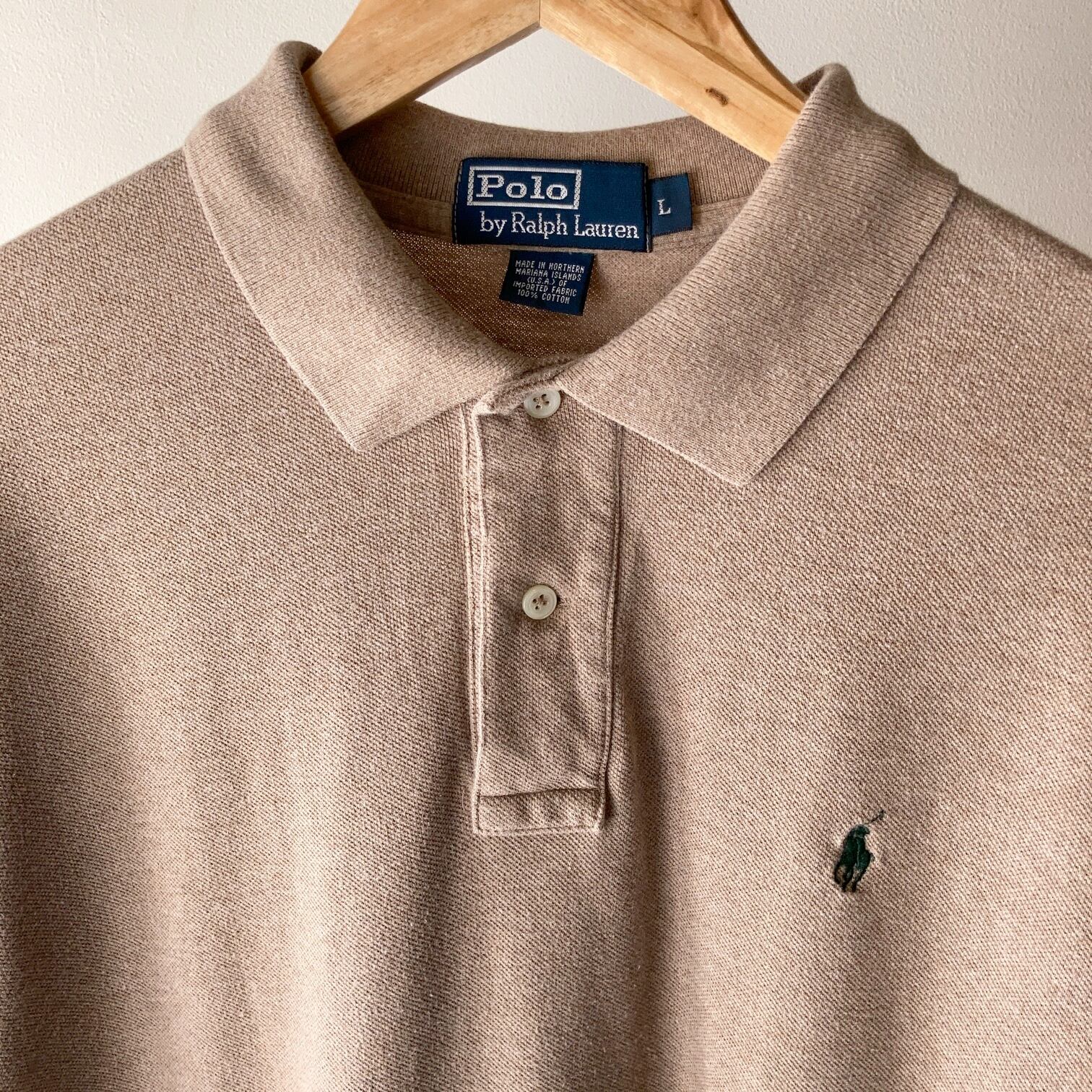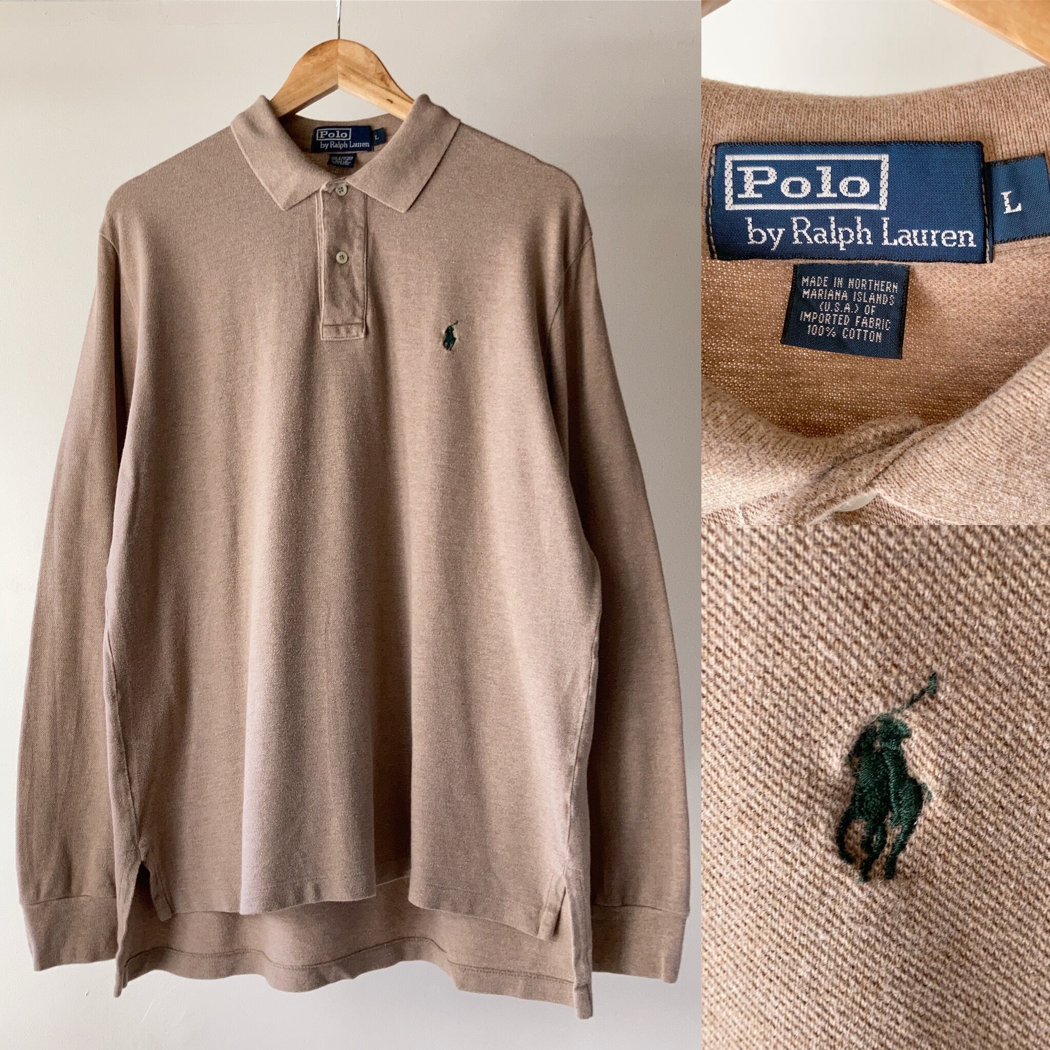 POLO Ralph Lauren L/S ポロシャツ ベージュ 状態良 SIZE L【0423A31】