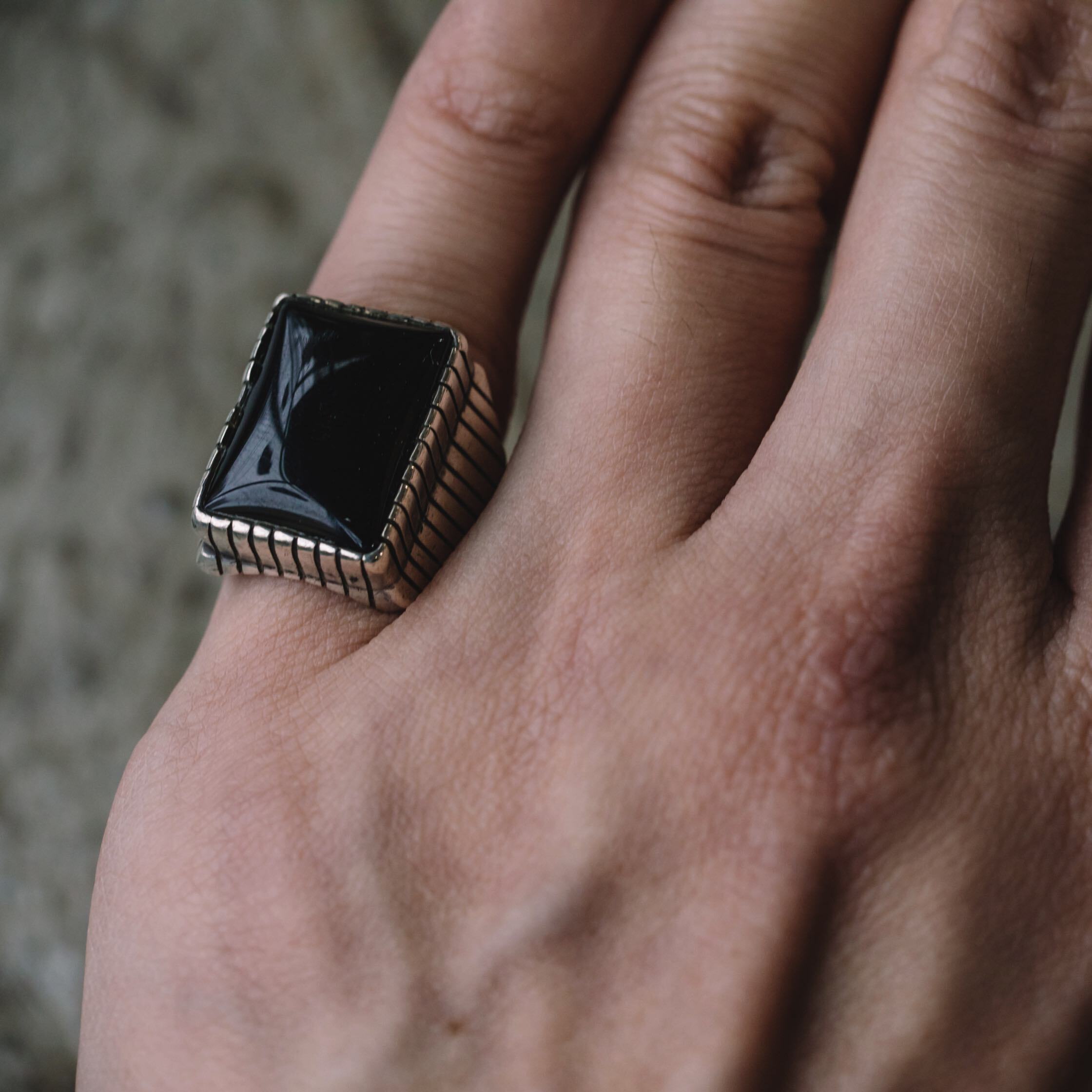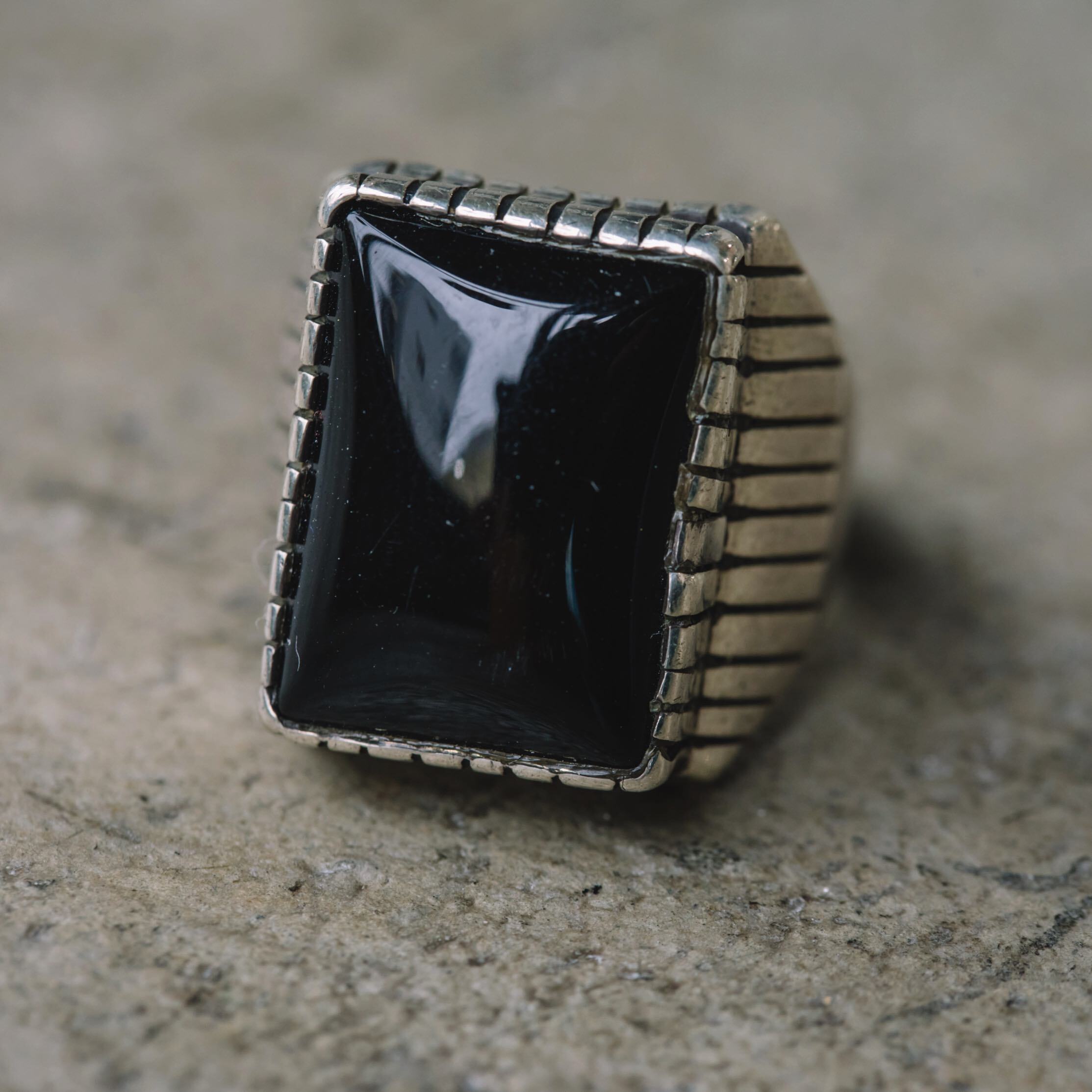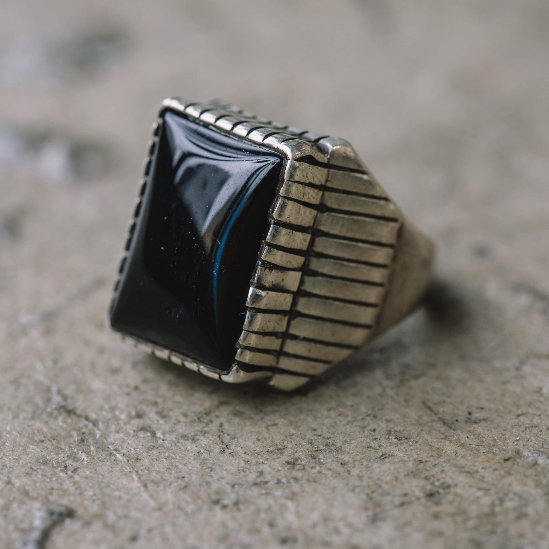 魔除けの意味合いを持つことが多い黒のストーンを使ったシルバーリングです。