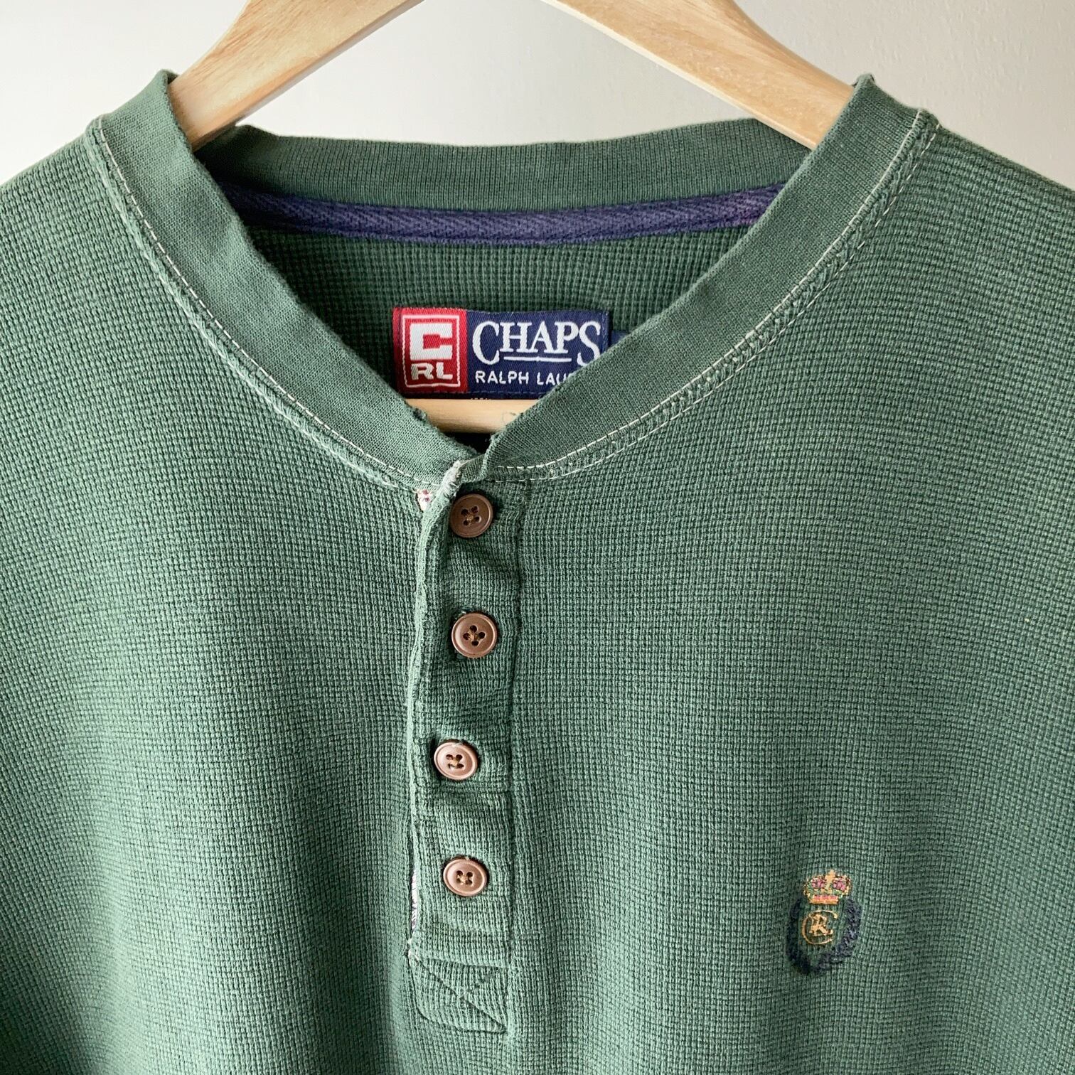 CHAPS Ralph Lauren ヘンリーネックサーマルロンTee ダークグリーン SIZE L【0430A10】