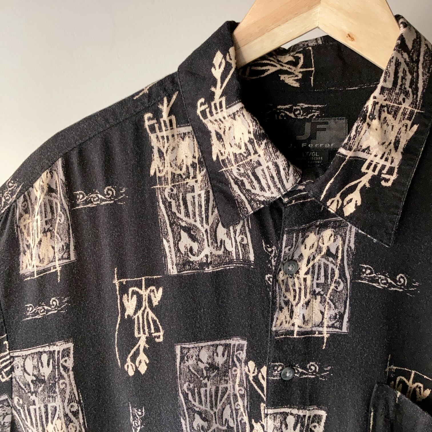 J.Ferrer レーヨン総柄S/Sシャツ ブラック SIZE LT 【0514A30】