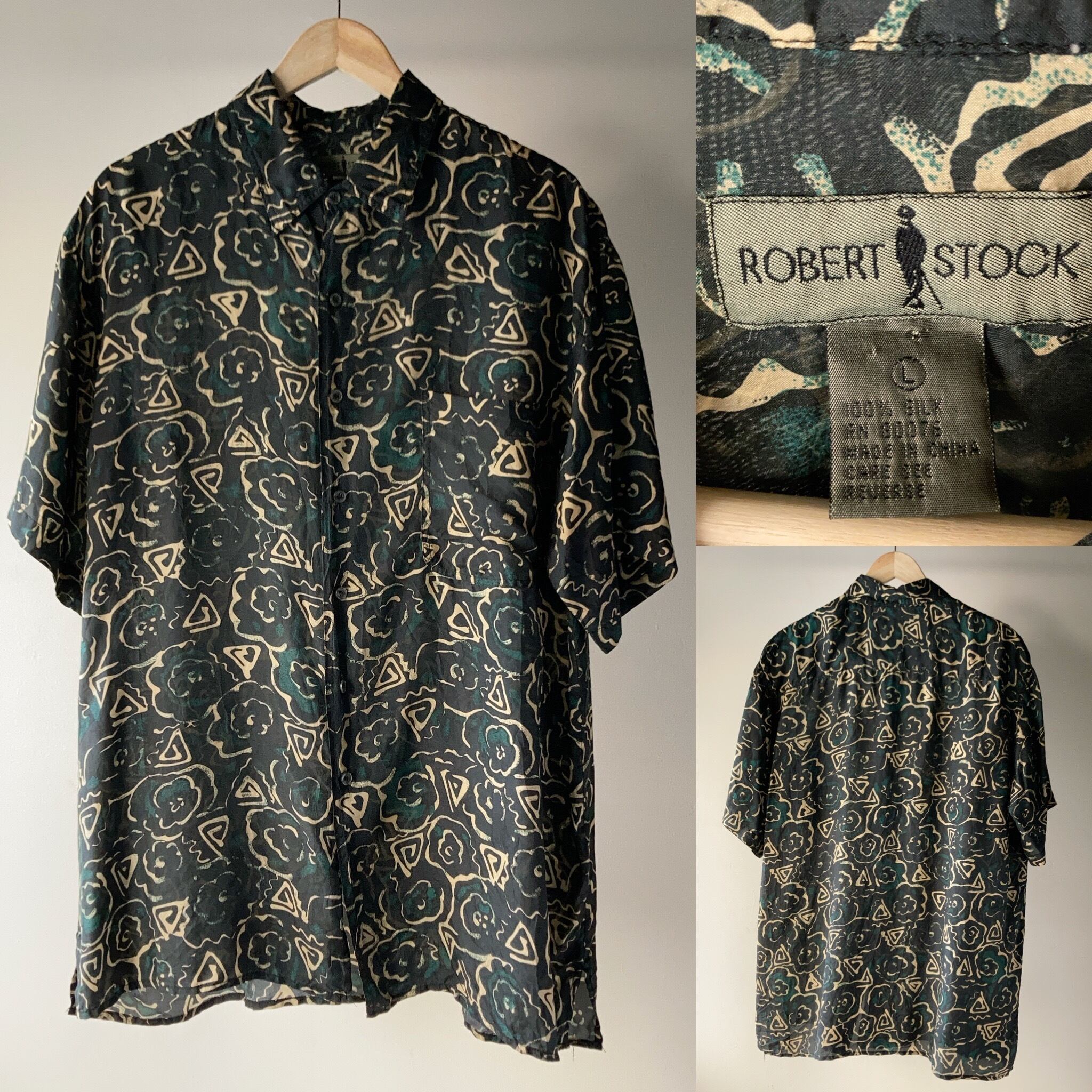 ROBERT STOCK 総柄シルクS/Sシャツ SIZE L 【0514A35】