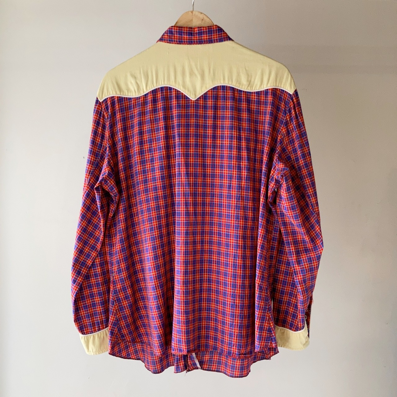 無地に刺繍が入ったウエスタンシャツではなくチェックとレーヨンのコンビ。さらに刺繍。