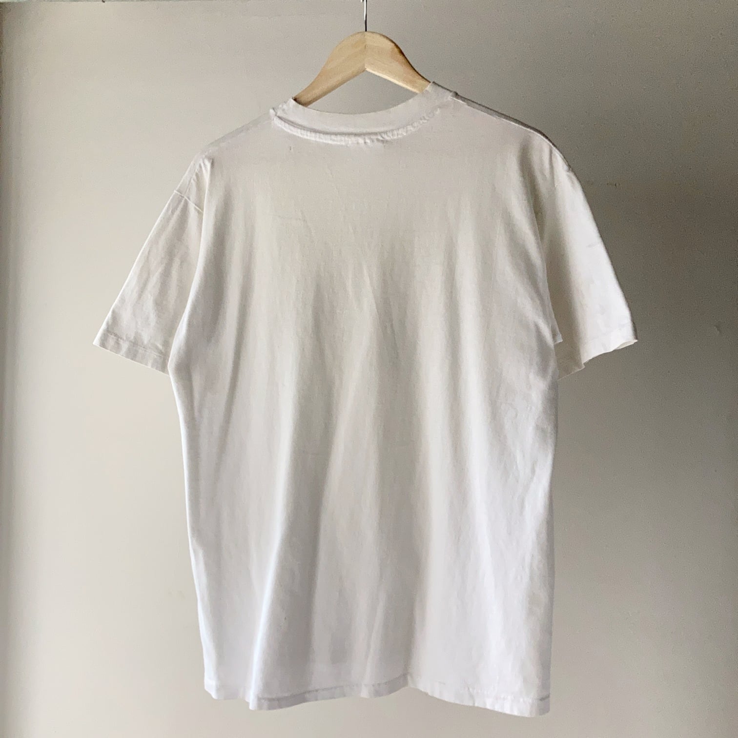 南国の海に生息するモンガラカワハギがプリントされた80年代のビンテージTシャツ。