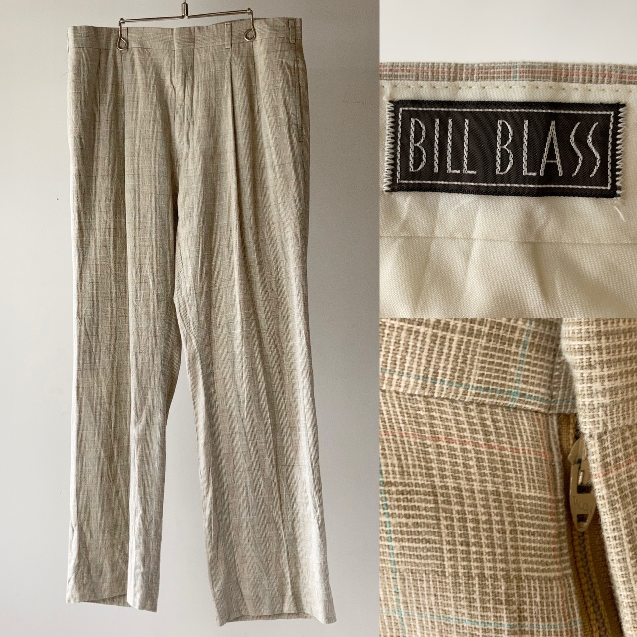 ~80's BILL BLASS チェック柄リネンスラックス USA製 【0528A33】