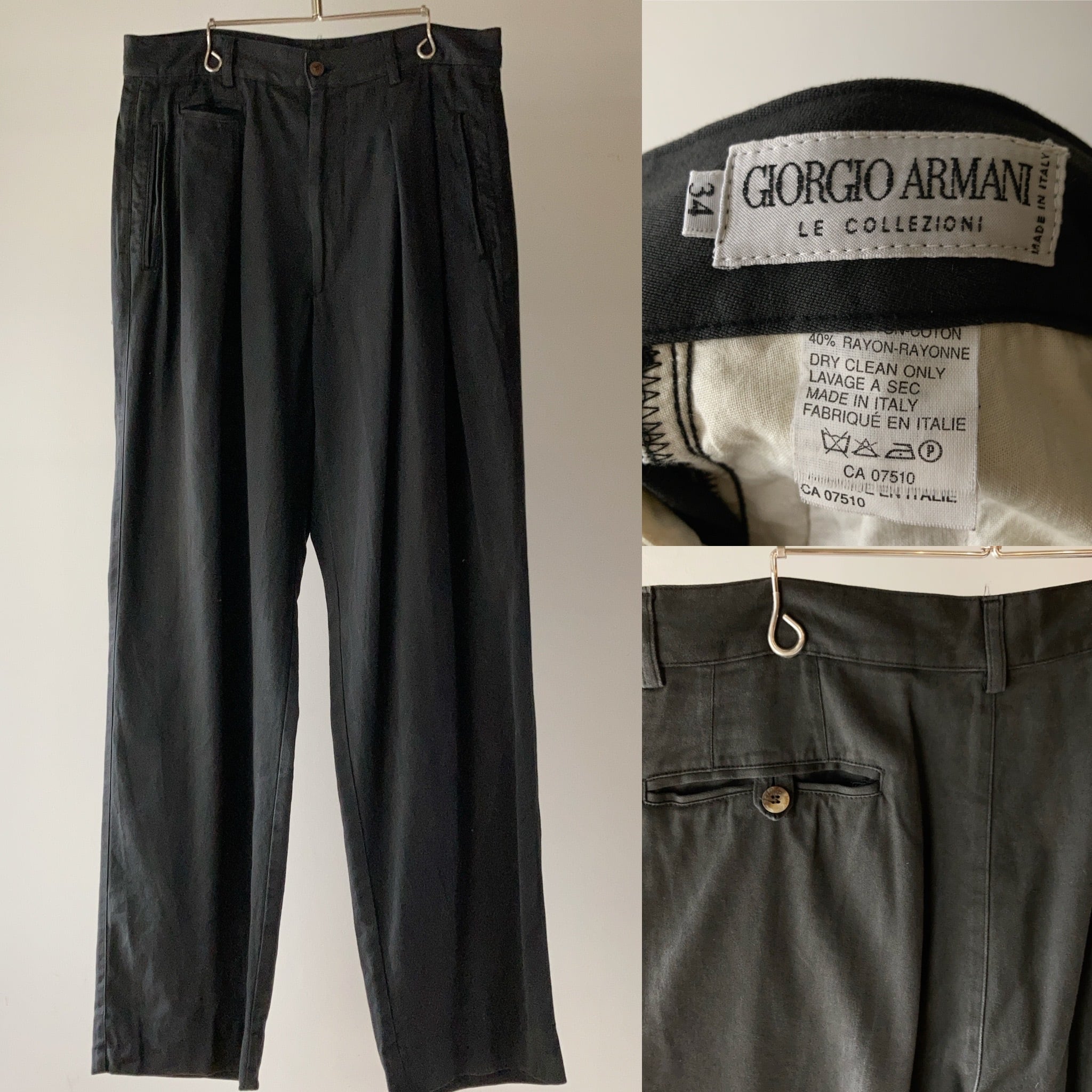 GIORGIO ARMANI 2タックパンツ ブラック ITALY製 W34【0528A51】