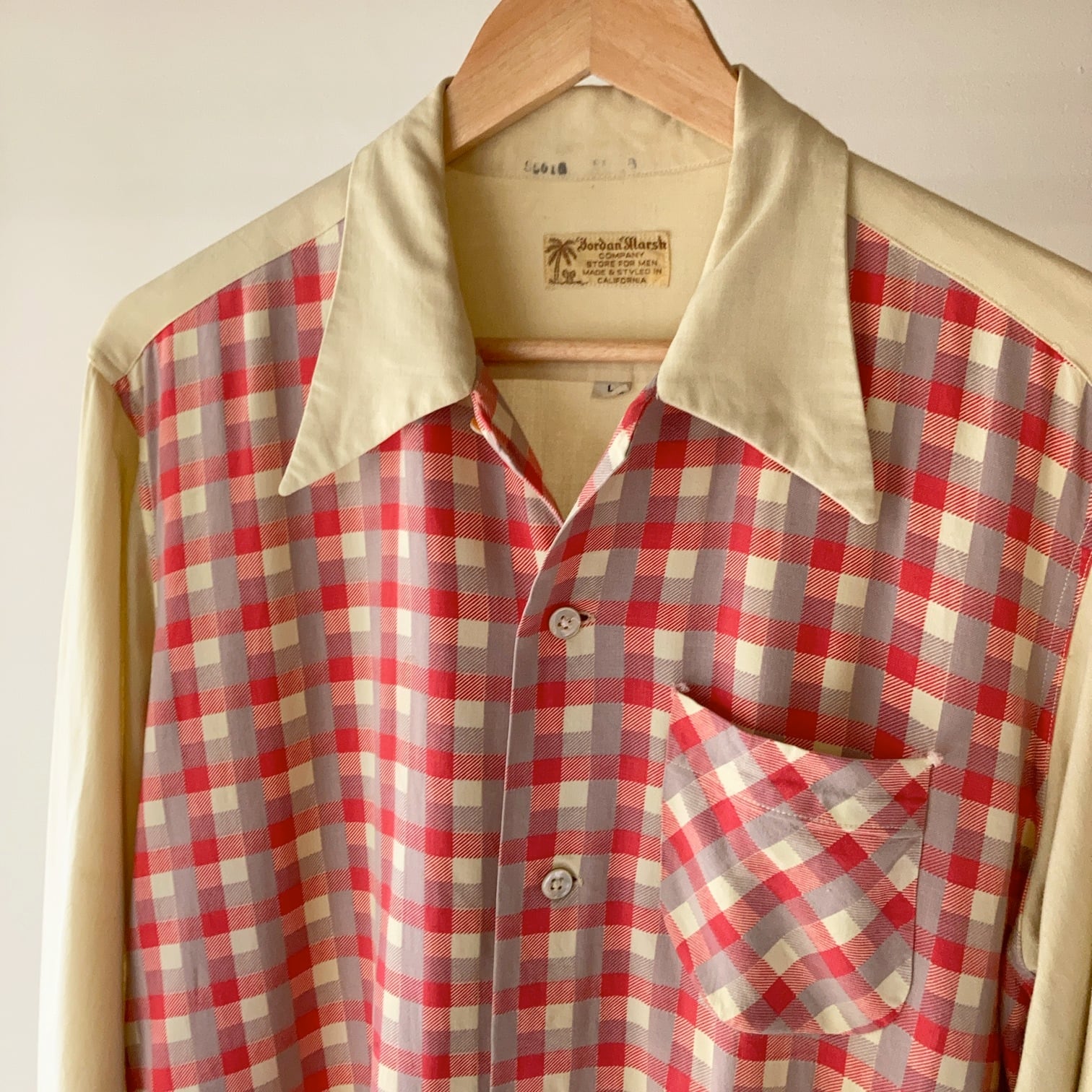 40~50's Jordan Marsh レーヨン切り替えL/Sシャツ Size L【0528A58】