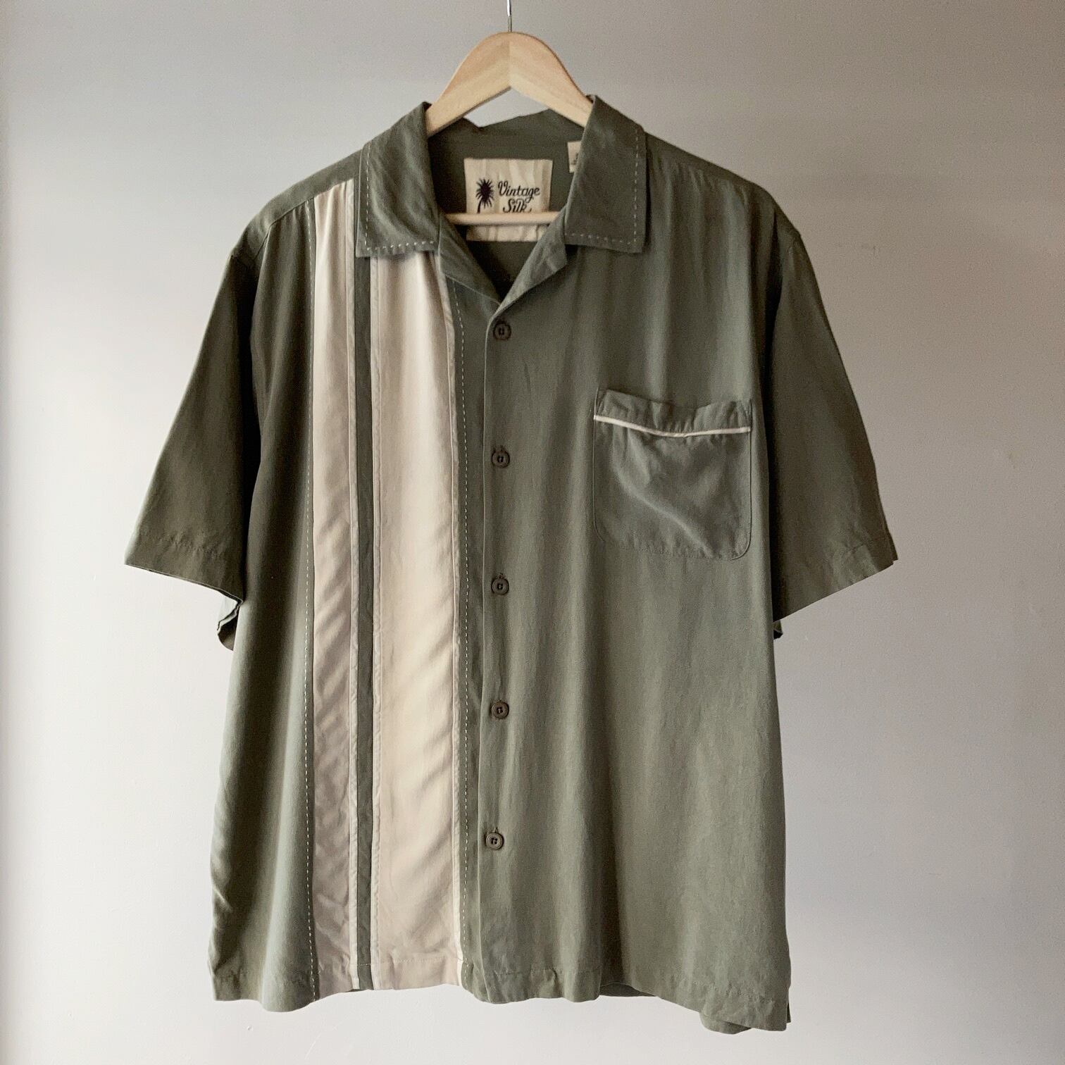 2トーン コンビ S/Sシルクシャツ 褪せたグリーン SIZE L【0604A23】