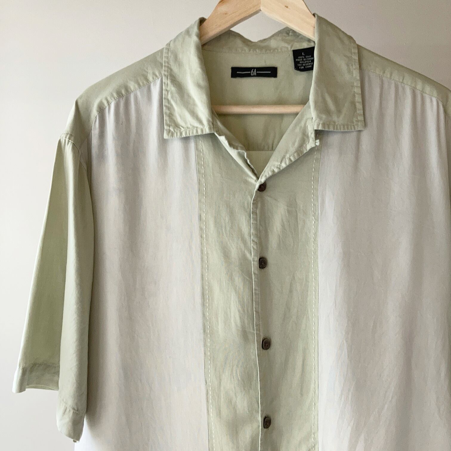 2トーン コンビ S/Sシルクシャツ ペールグリーン SIZE L【0604A24】