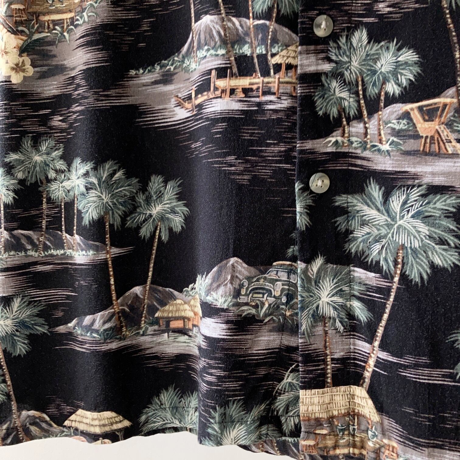 croft&barrow S/Sブラックレーヨンアロハシャツ SIZE L【0604A42】