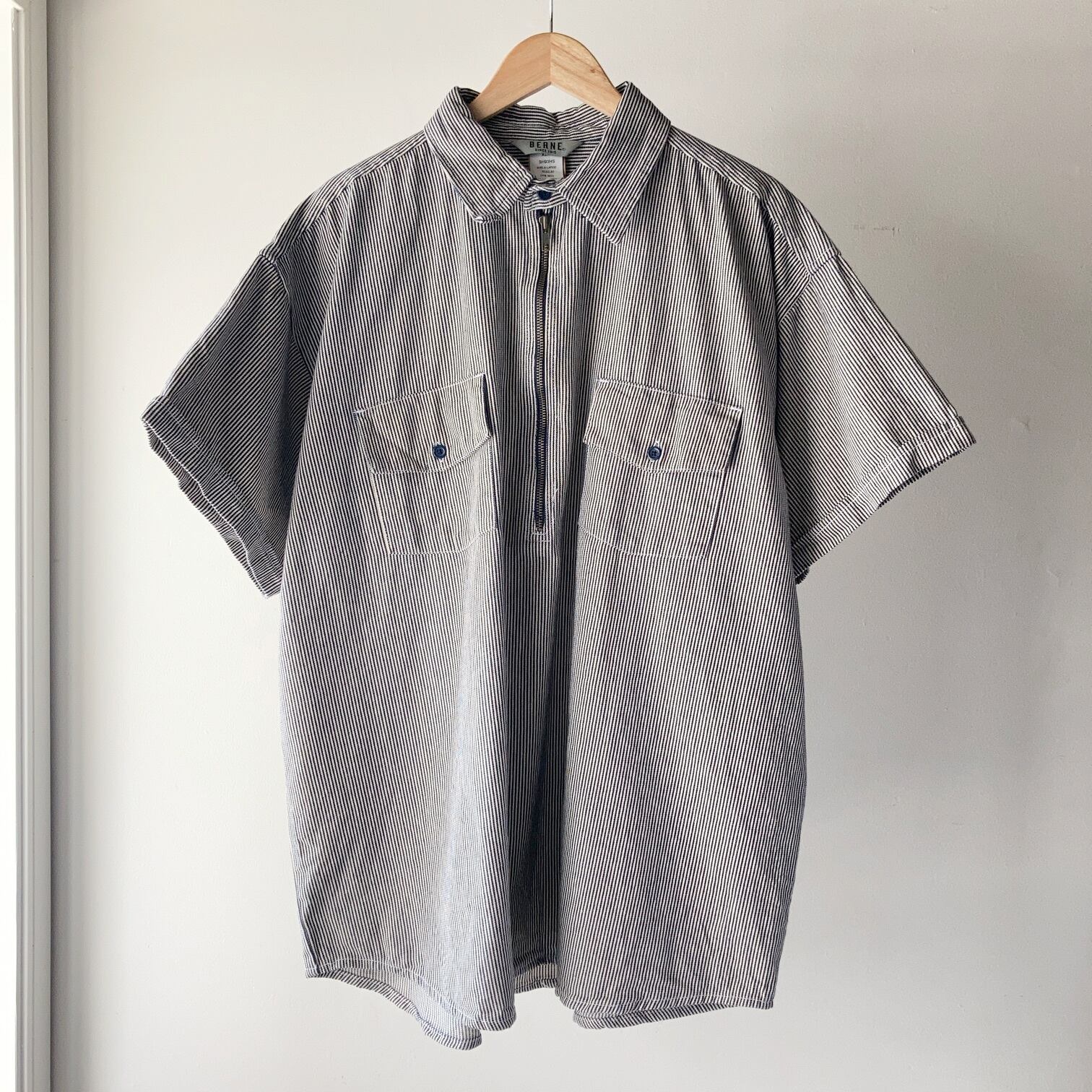 BERNE ハーフジップ プルオーバーワークシャツ ストライプ SIZE XL【0604A44】
