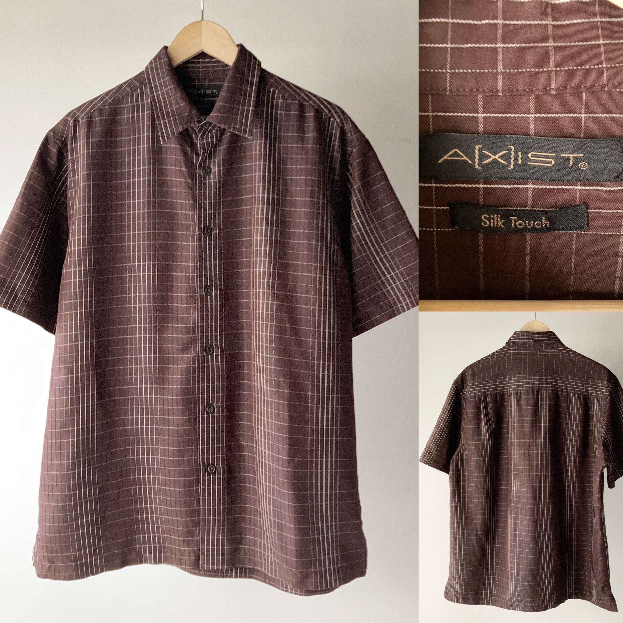 AXIST レーヨン×ポリエステル混紡 S/Sシャツ ブラウン SIZE L【0604A69】