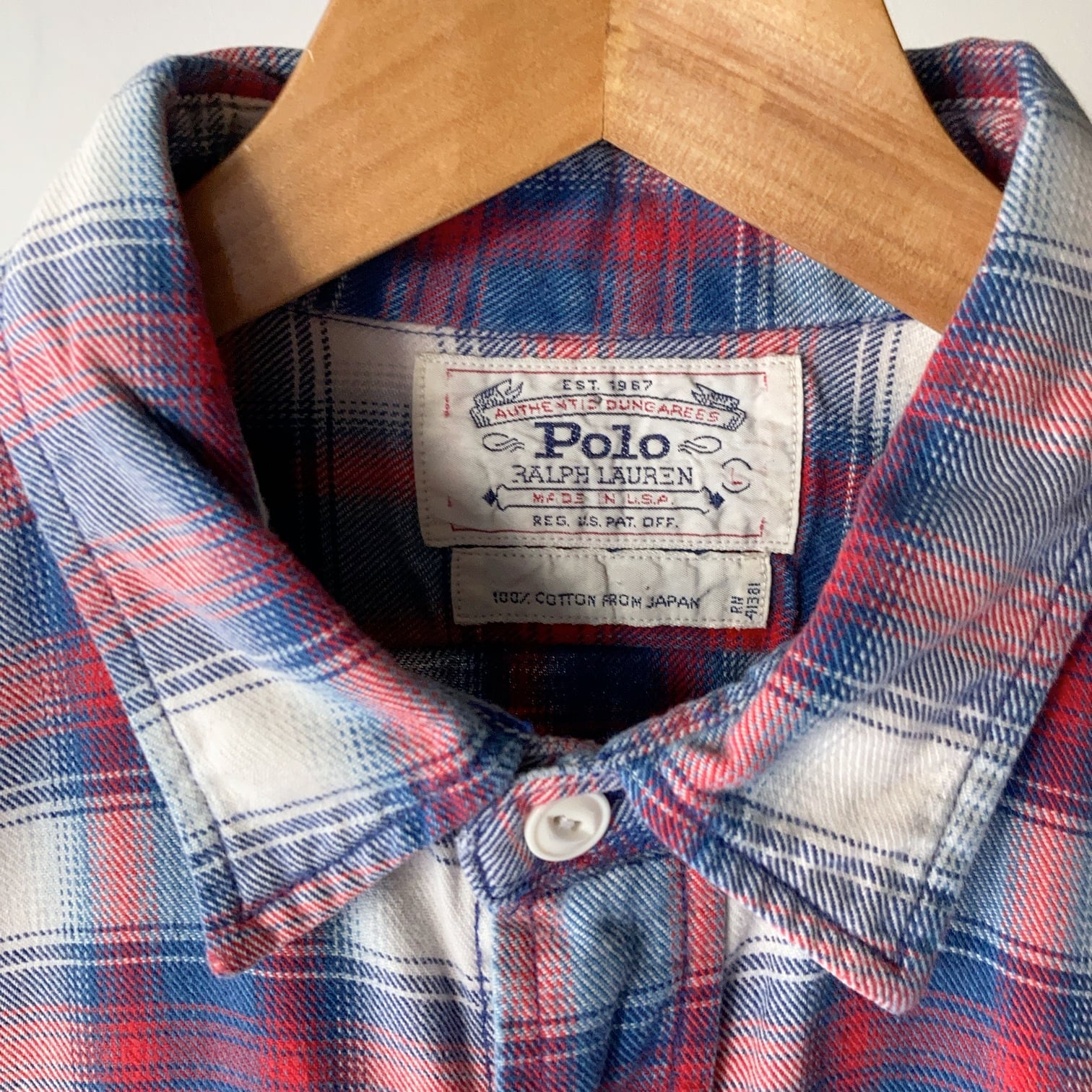 80's POLO by Ralph Lauren オンブレチェック コットンシャツ Size L【0611A09】