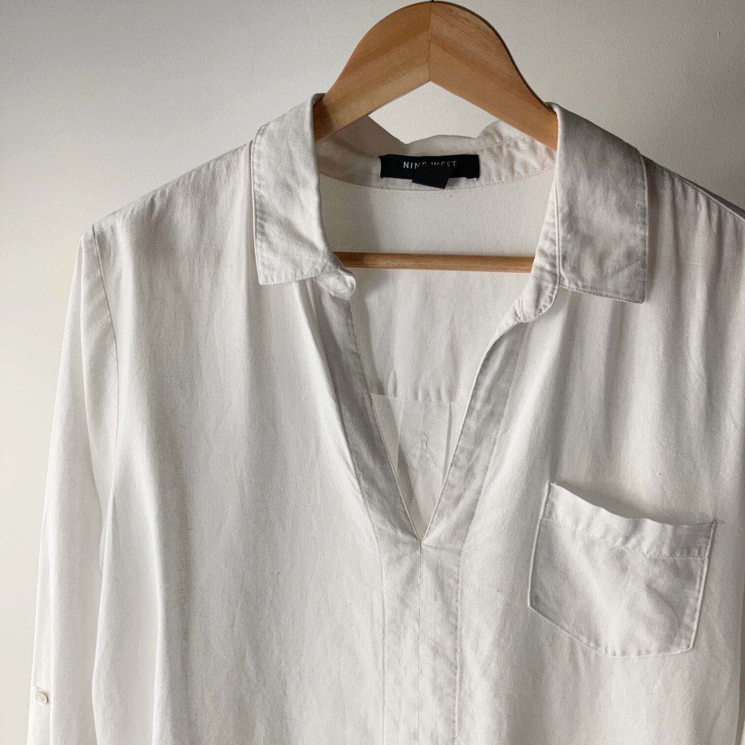 NINE WEST リネンプルオーバーシャツ ホワイト Size L【0611A19】