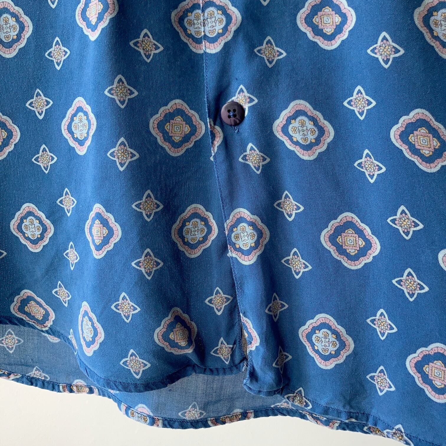 和風を感じる小紋柄が入ったレーヨン柄シャツ。