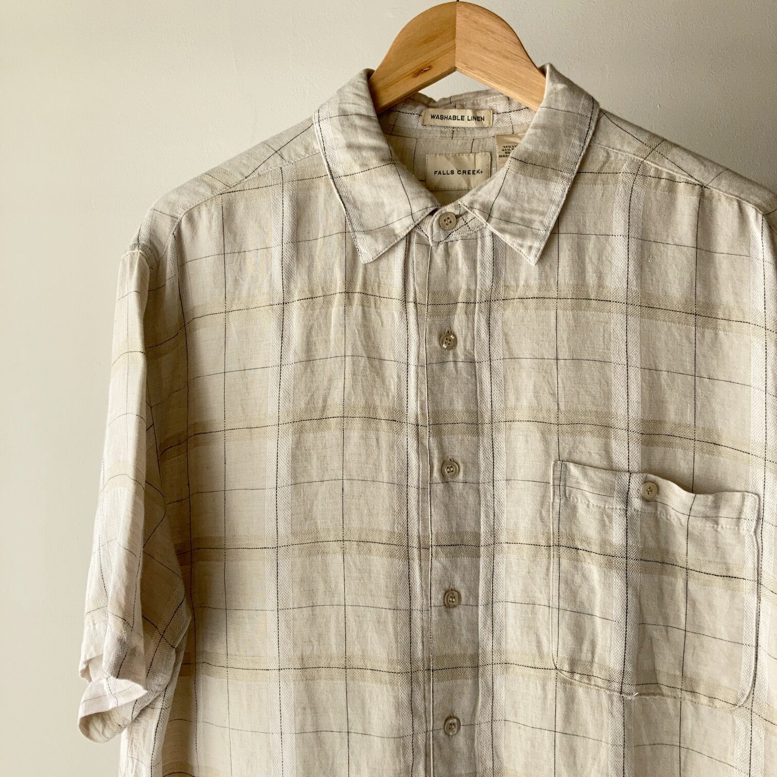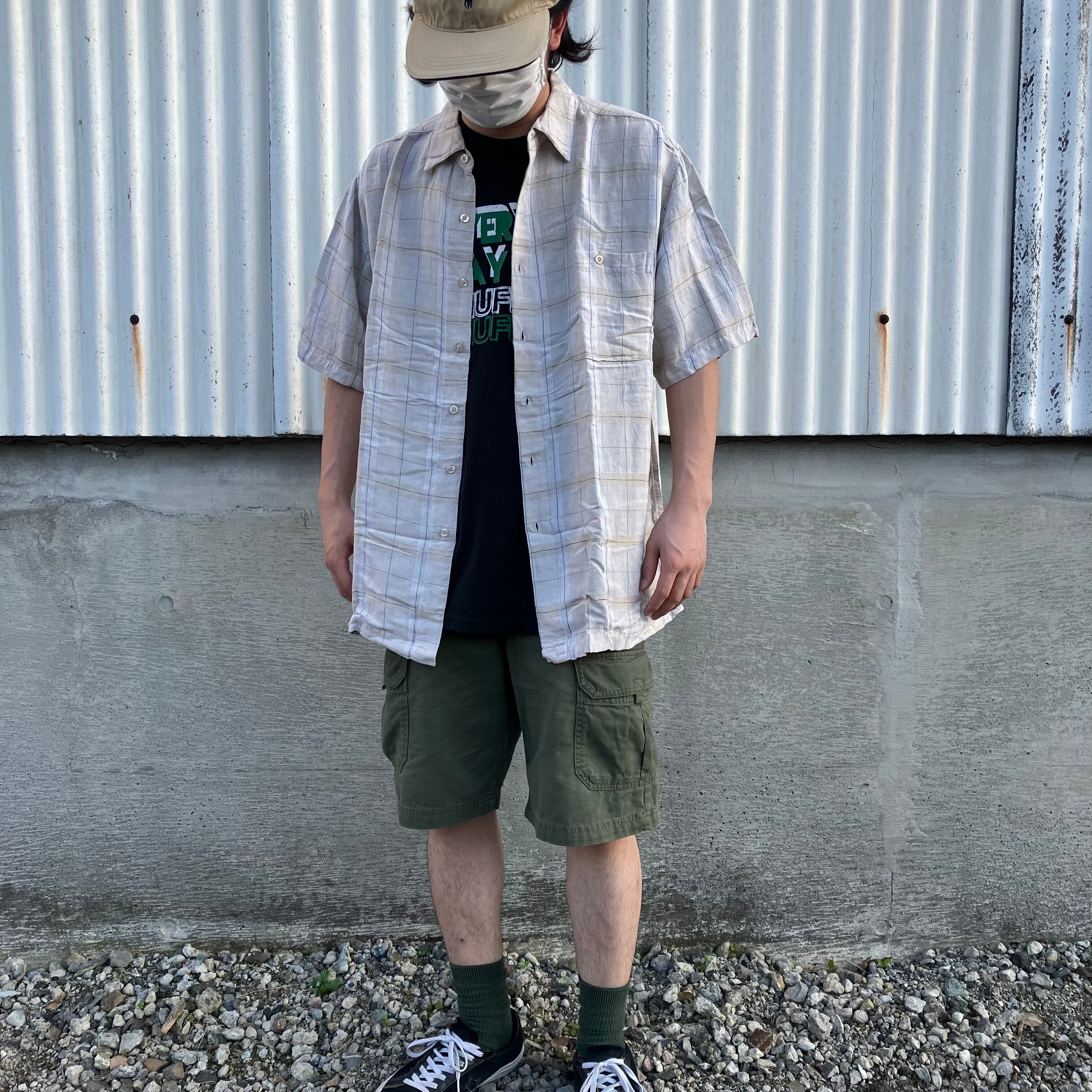 リネンレーヨンチェックシャツ ライトベージュ SIZE L【0611A46】