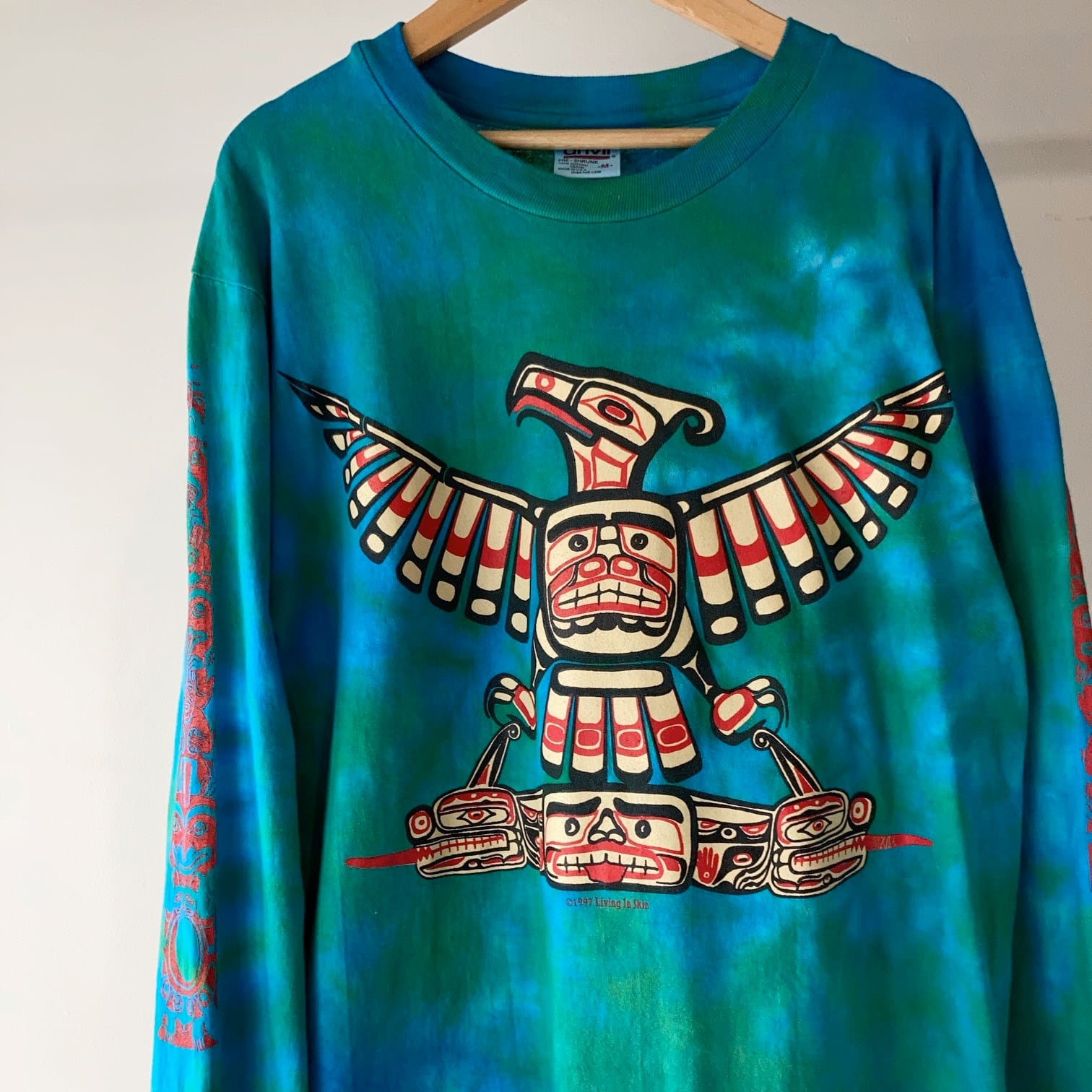 90年代タイダイロンTeeボディにトーテムポールのプリントが入ったTシャツ。