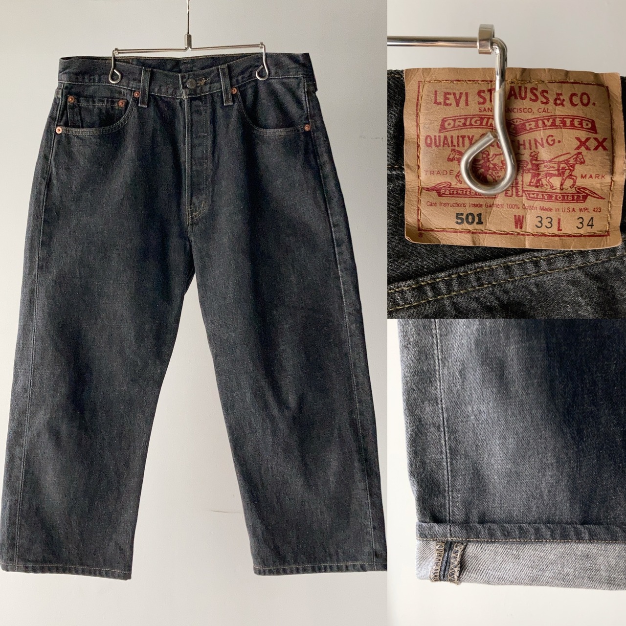 90's Levi's 501 先染めブラックデニムパンツ USA製 W33 短丈【0618A39】