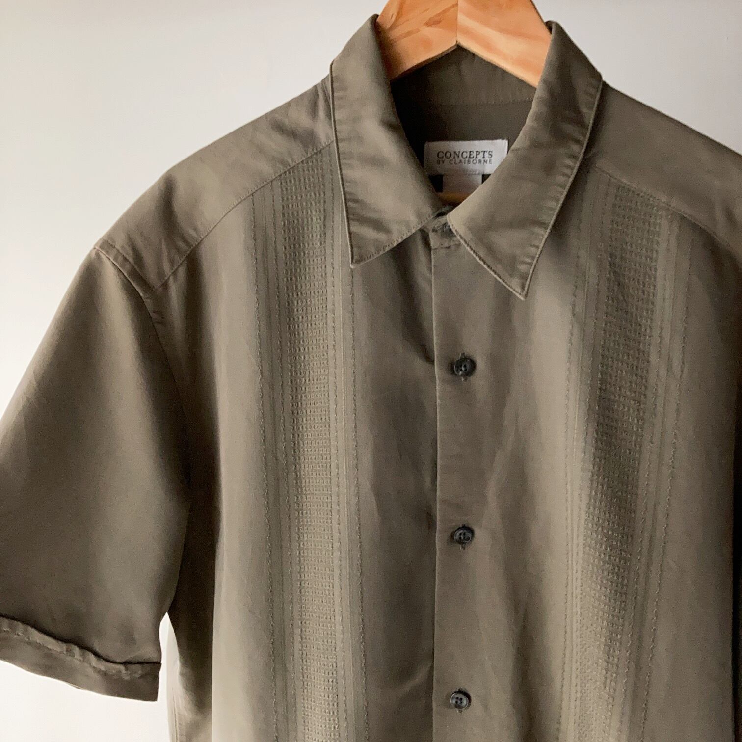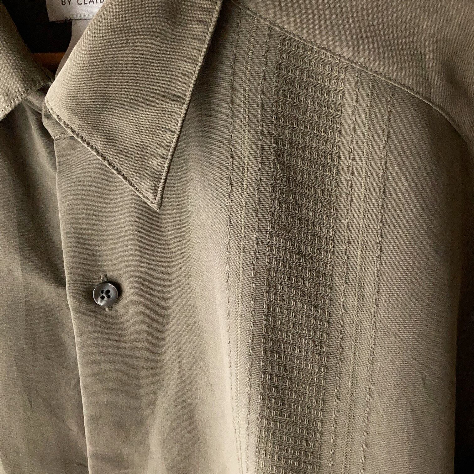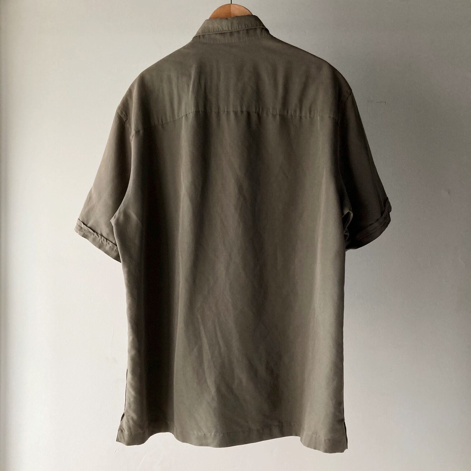 刺繍レーヨンシャツ オリーブカーキ SIZE M【0618A52】