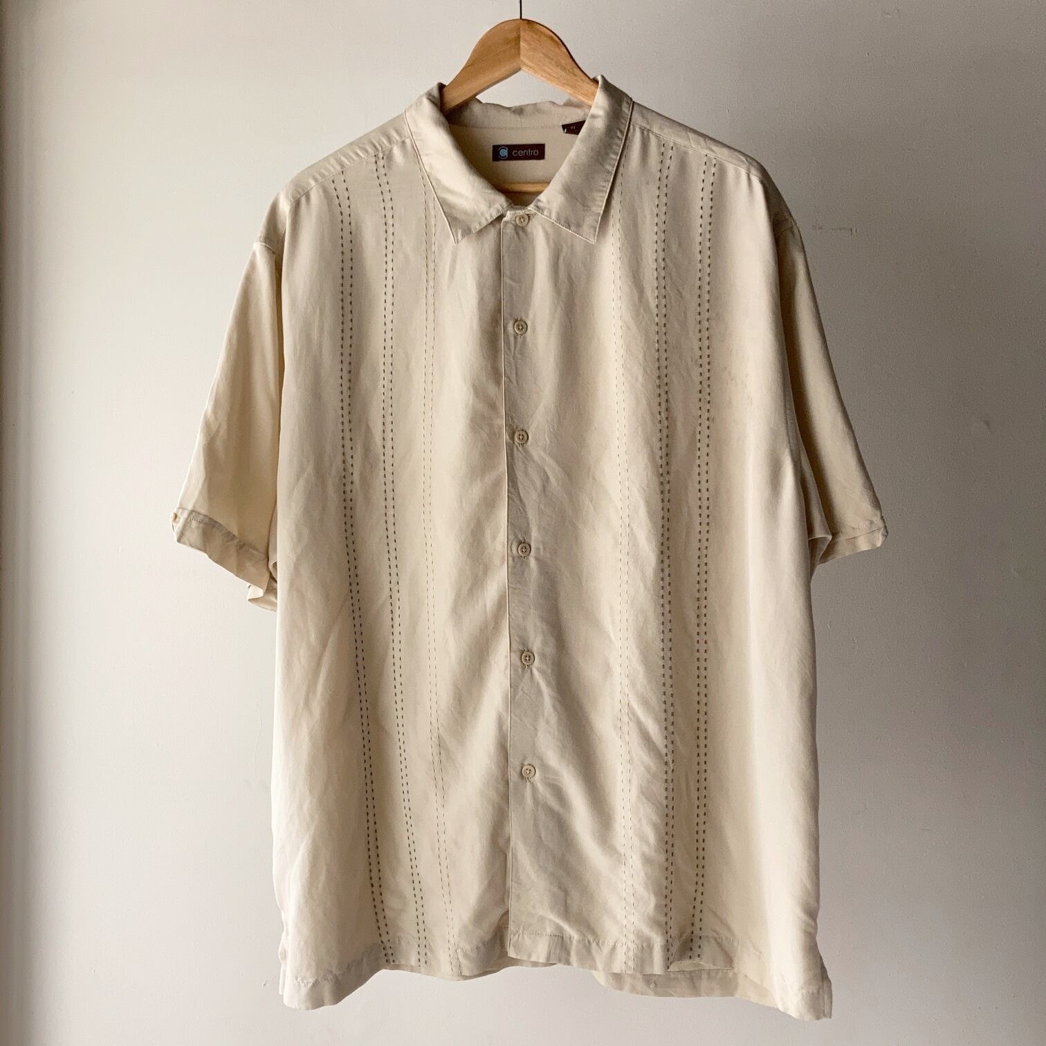 ホワイトベージュ 刺繍入りレーヨンシャツ SIZE XL【0618A54】