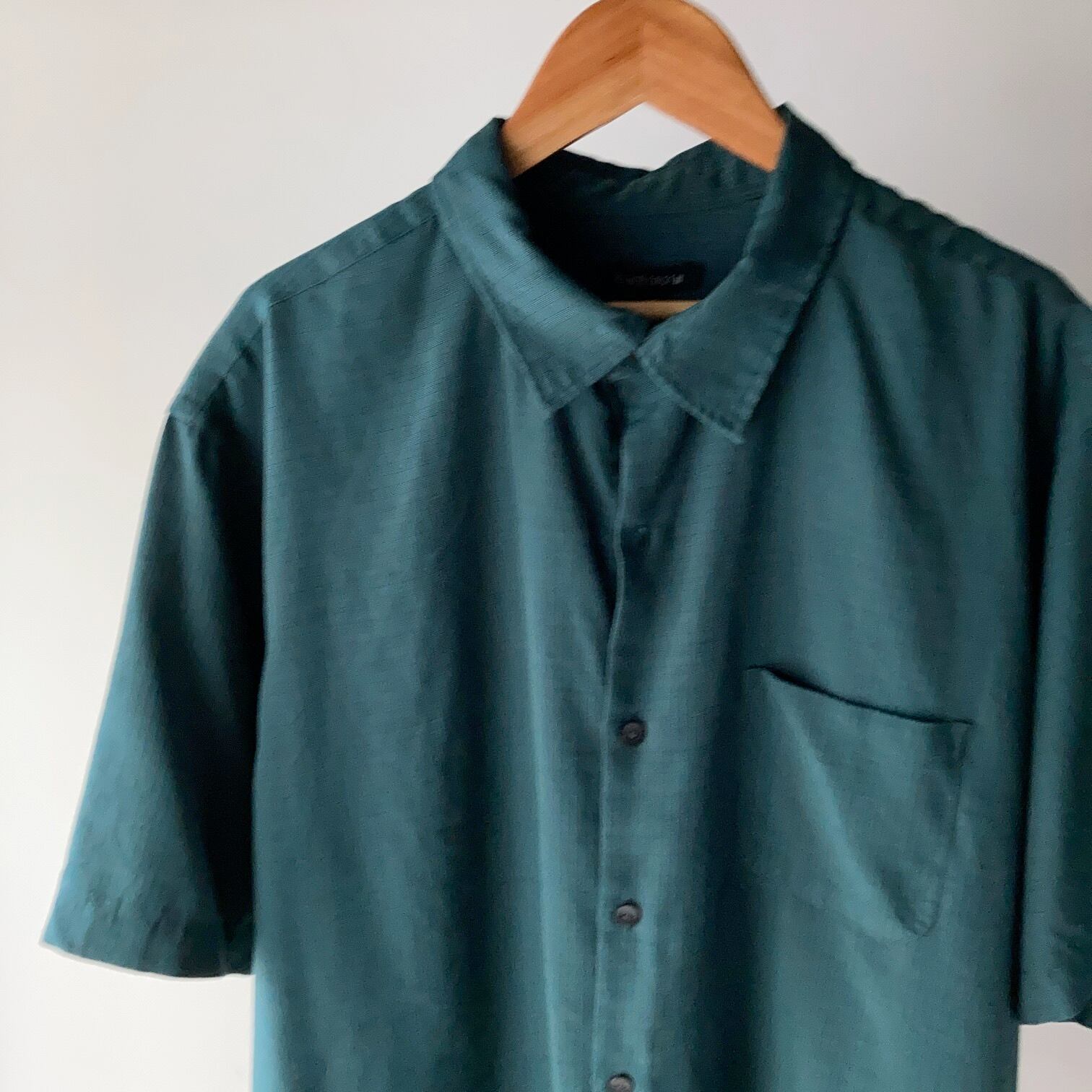 VAN HEUSEN ダークグリーン レーヨンシャツ size L【0618A56】