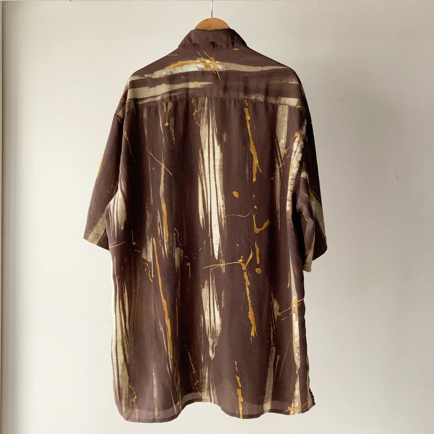 Design 総柄ポリシャツ ブラウン size M【0618A62】