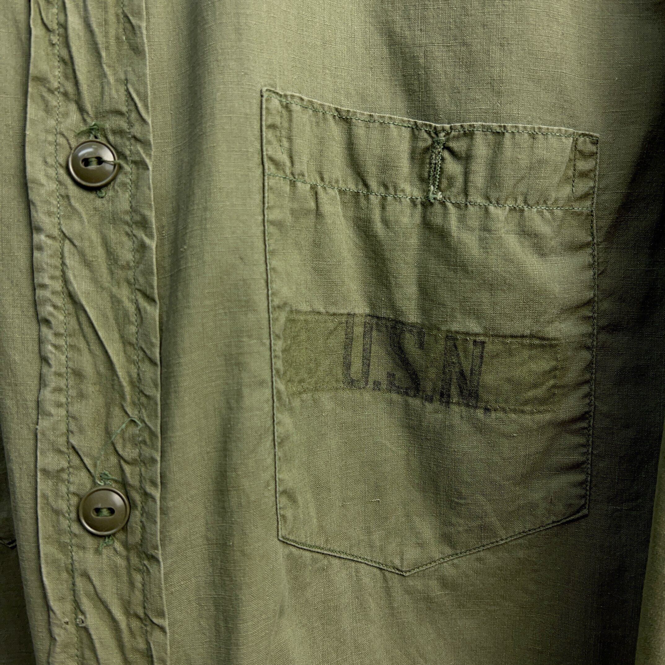 片方の胸ポケットボタンが欠損しております。(U.S.N.ステンシル付きのポケット)