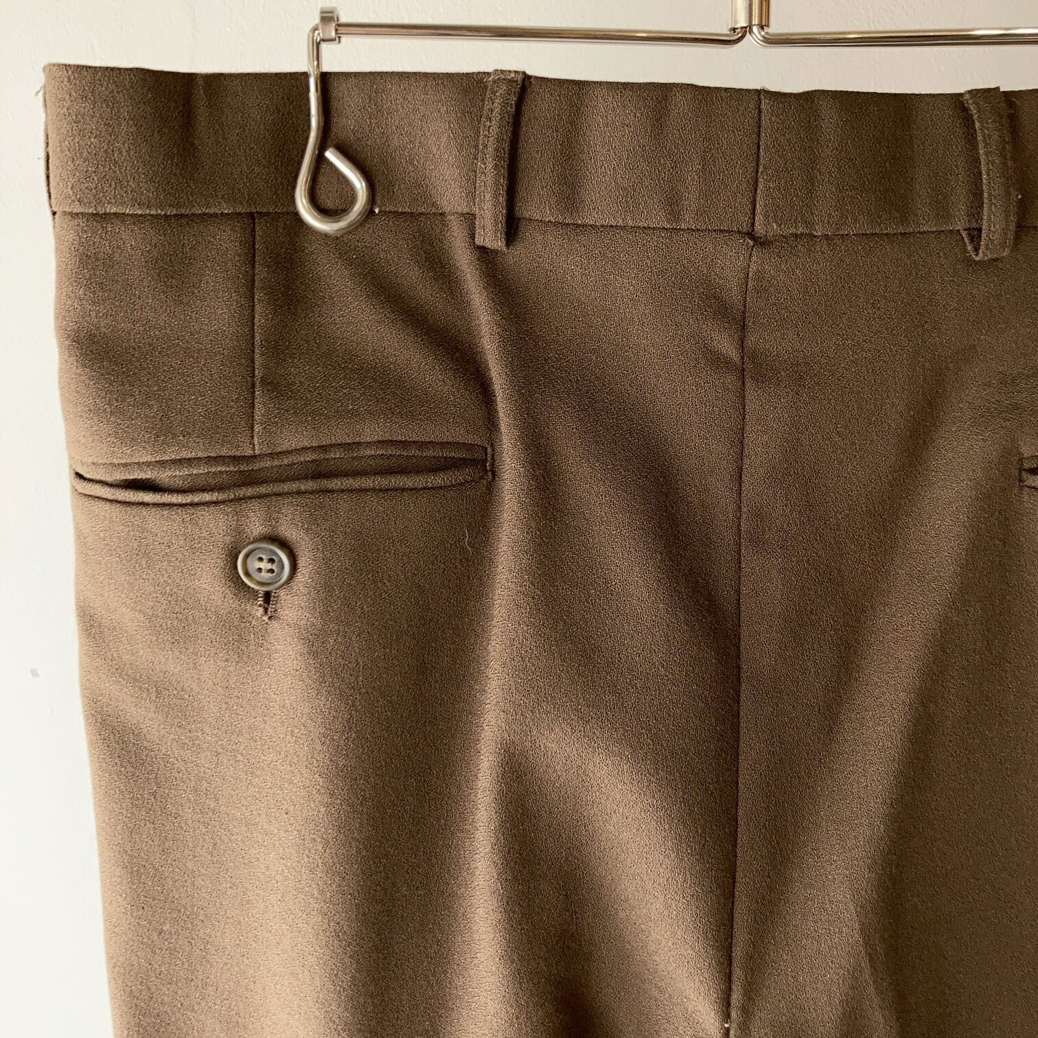 チャコールブラウンの3タック入りスラックス。