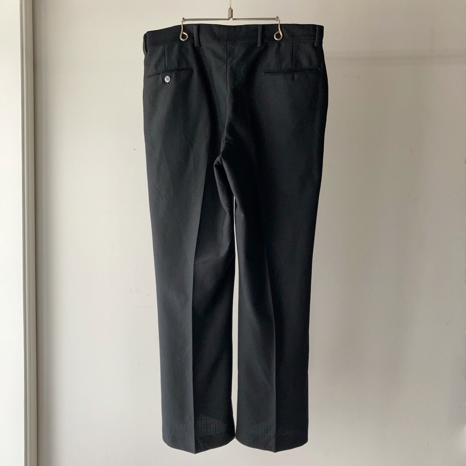 70~80年代頃のビンテージフレアスラックス。ウエストが大きめなのでそこまで細くないシルエットとなります。フレアに挑戦してみたいという方は定番で合わせやすい黒がオススメです!!