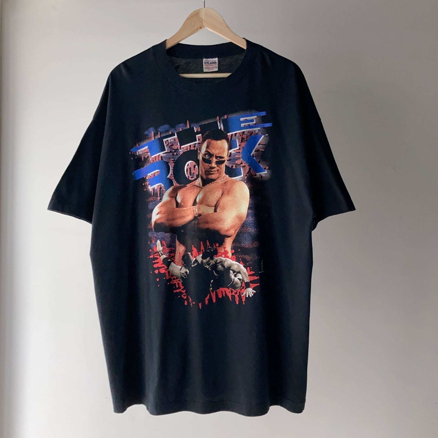 俳優ドウェイン・ジョンソンが90年代にWWFでプロレスラーとして活躍していた頃のTシャツ。