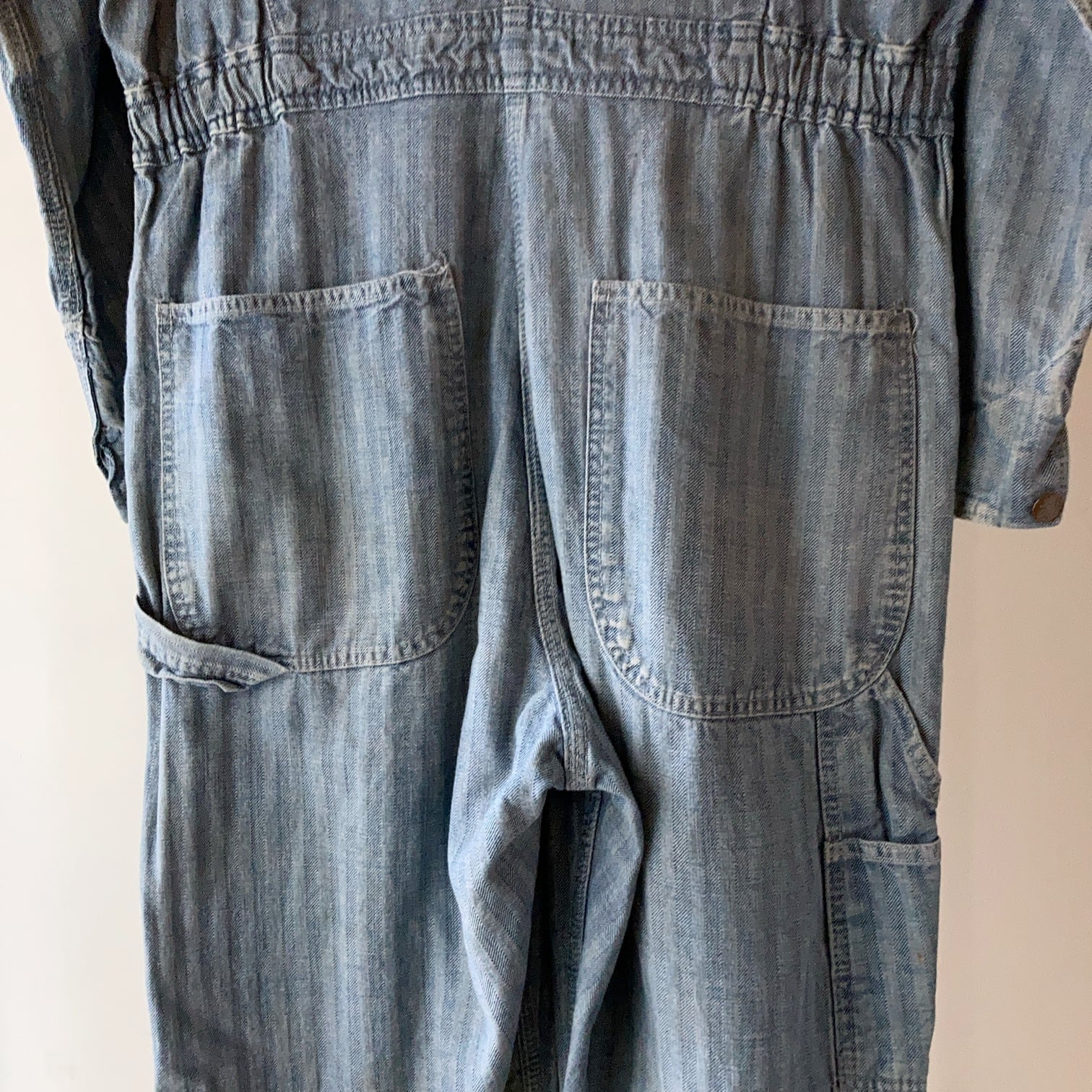 これぞツナギといったHBT生地が使われたワークウエアらしい雰囲気のある1着となります。