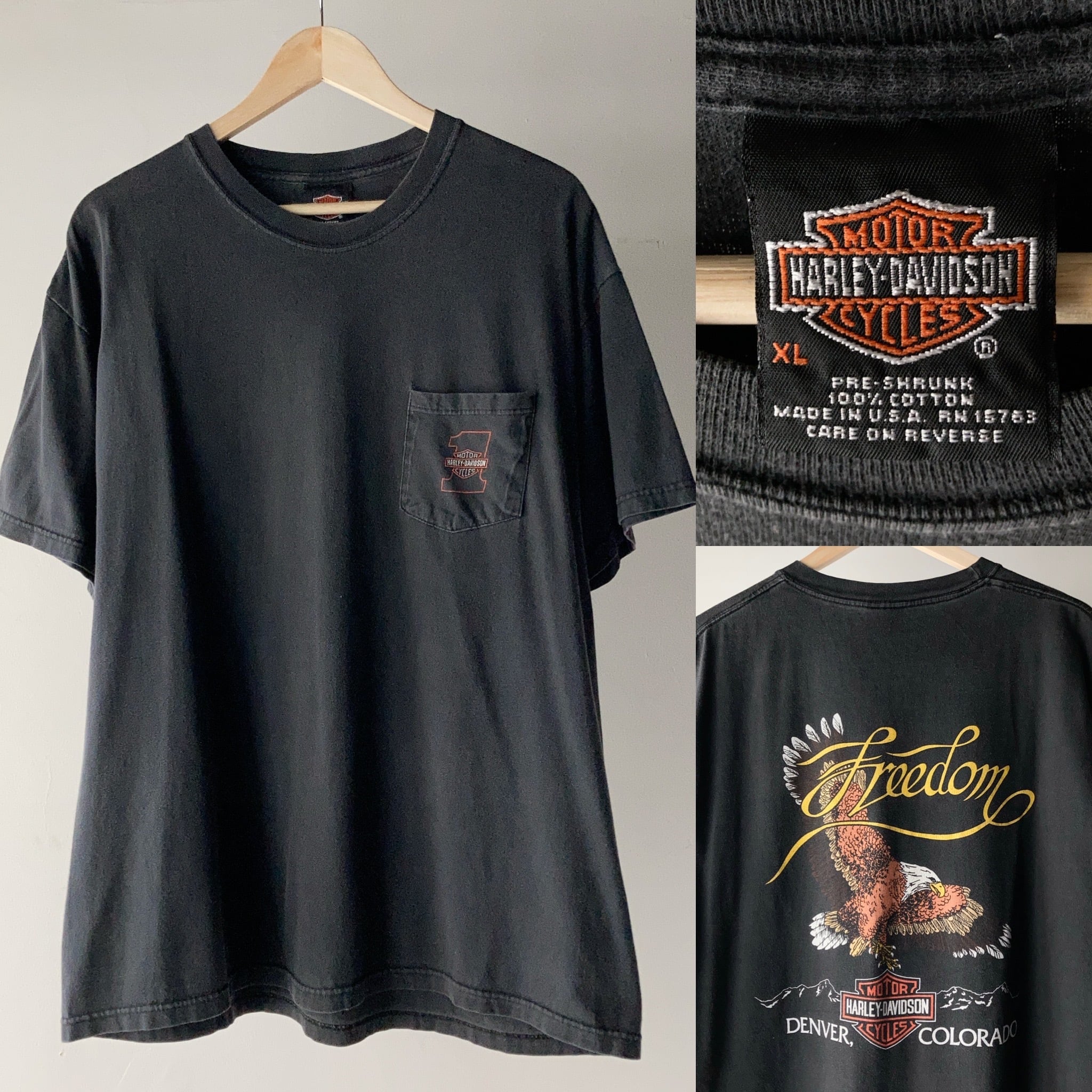 90年代Harley-DavidsonのバックプリントポケTee。Malboro Tシャツのようにさらに値段が上がるアイテムだと思います。