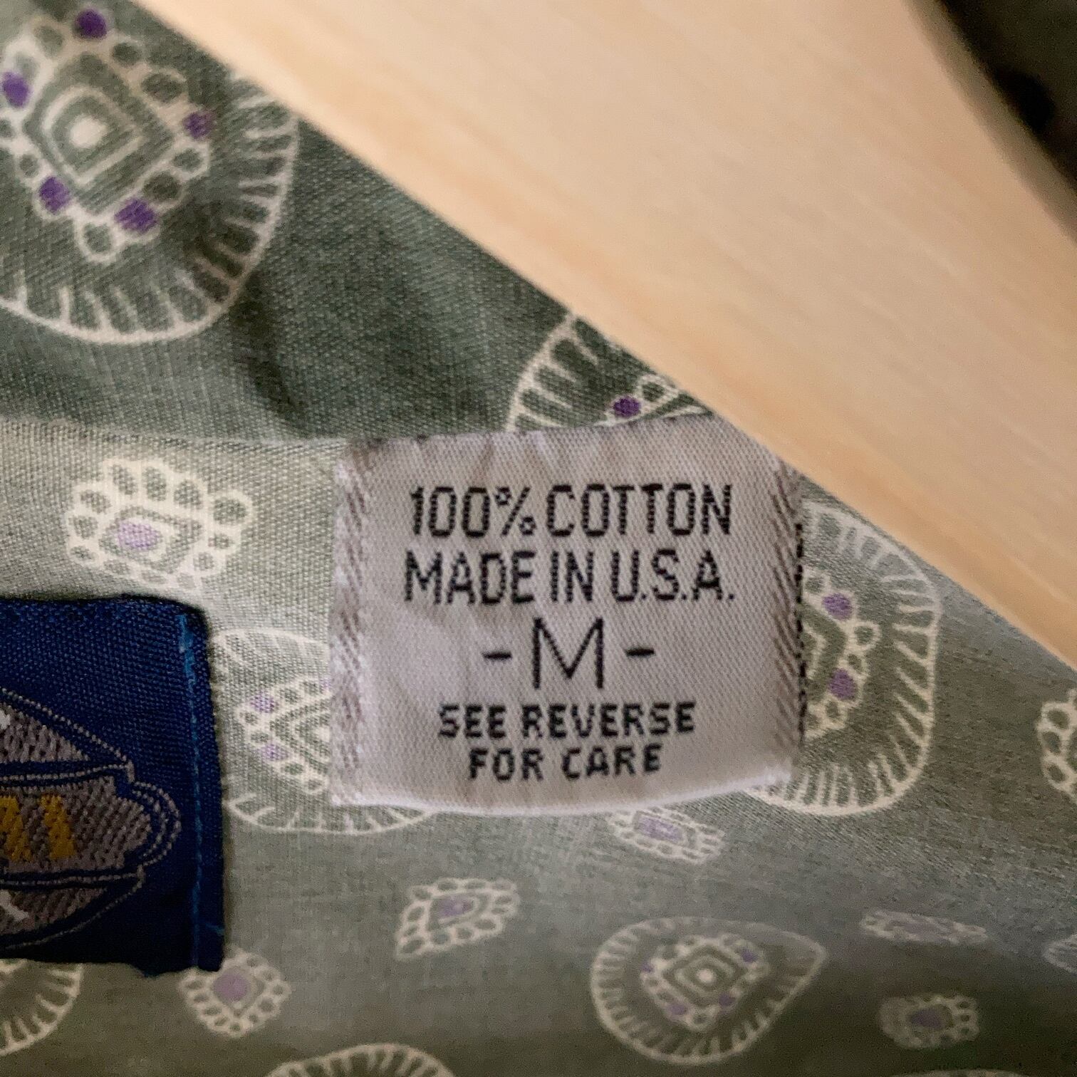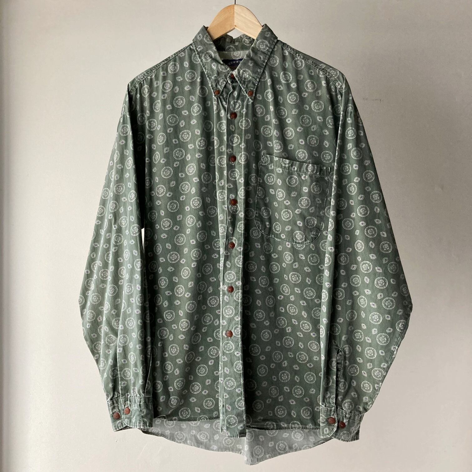 90's USA製 小紋柄コットンL/Sシャツ SIZE M【0716A40】